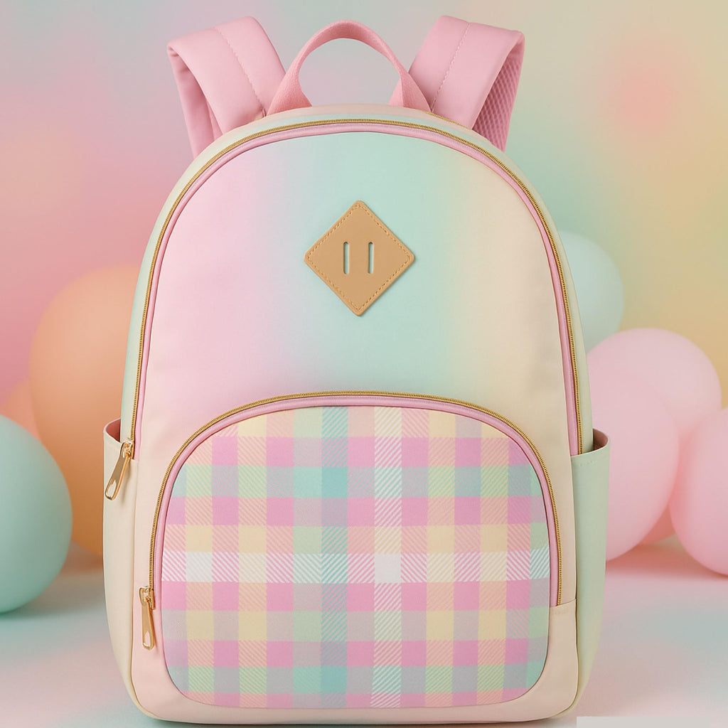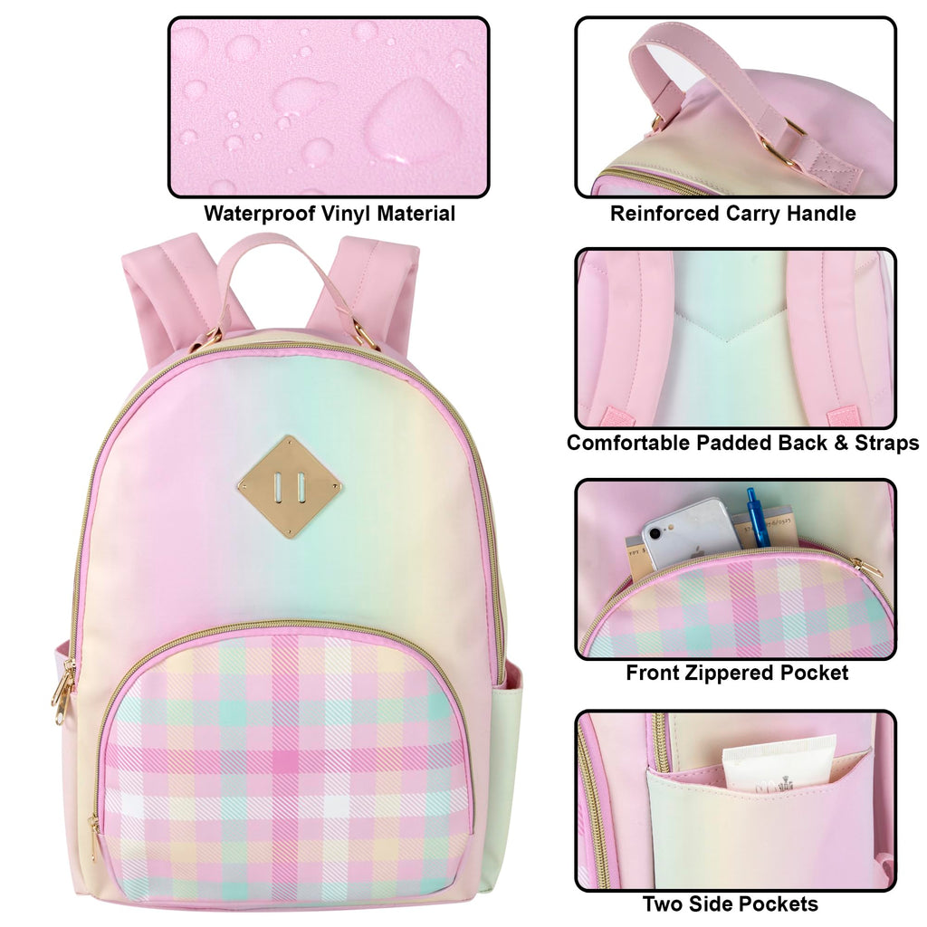 Emma & Chloe Pastel Waterproof Vinyl Backpack for Traveling and Commuting (Ombre Stripes)