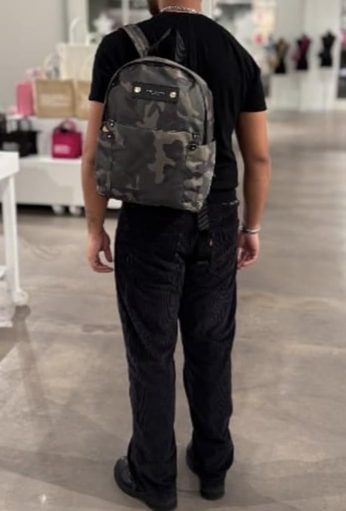 Brand: Marc JacobsColor: Camo MultiFeatures: Dual adjustable backpack straps Zip-around closure Exterior features 2 side slip-in pockets Approx. 16" H x 11.5" W x 4.25" D Approx. 7" handle drop, 3-13" strap dropDetails: Description Dual adjustable backpack straps Zip-around closure Exterior features 2 side slip-in pockets Approx. 16" H x...