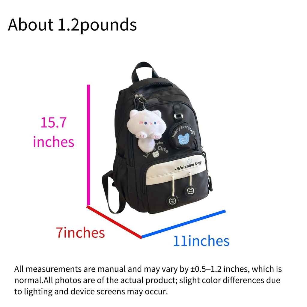 Vivixilan Cute Backpack with a Plush Pendant, Stylish Multi-pocket Bookbag with Anti-theft Design for New Semester Gifts (black)