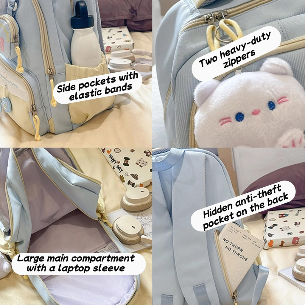 - 【Adorable Cat Charm & Versatile Colors】: This backpack features a cute plush cat charm and a pastel colored design, available in six vibrant colors. It adds a playful touch to daily wear and is nice for daily use and casual outings.