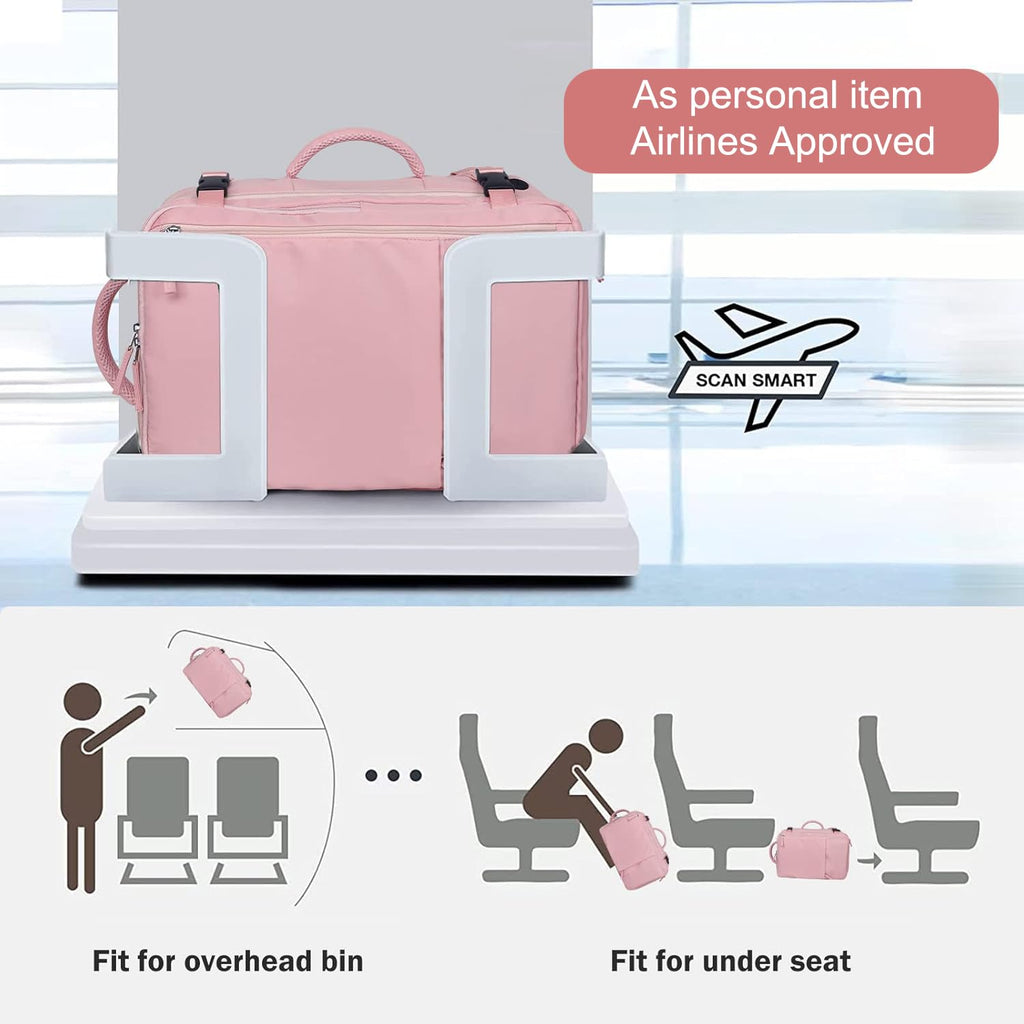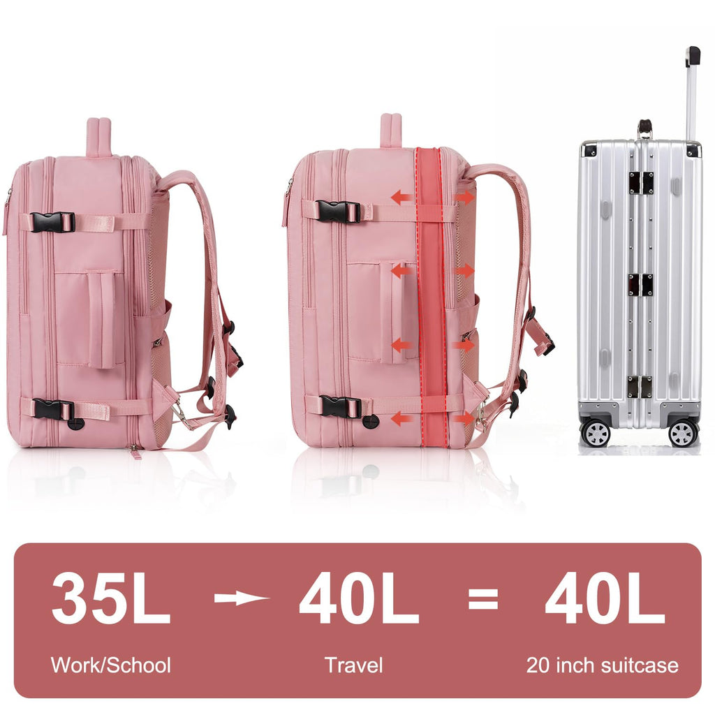 Hanples Carry on Travel Backpack for Women, Large 40L Personal Item Luggage Backpack,17inch Laptop Backpack TSA Flight Approved, Travel Essentials Casual Daypack with 2 Toiletry Bags (Pink)