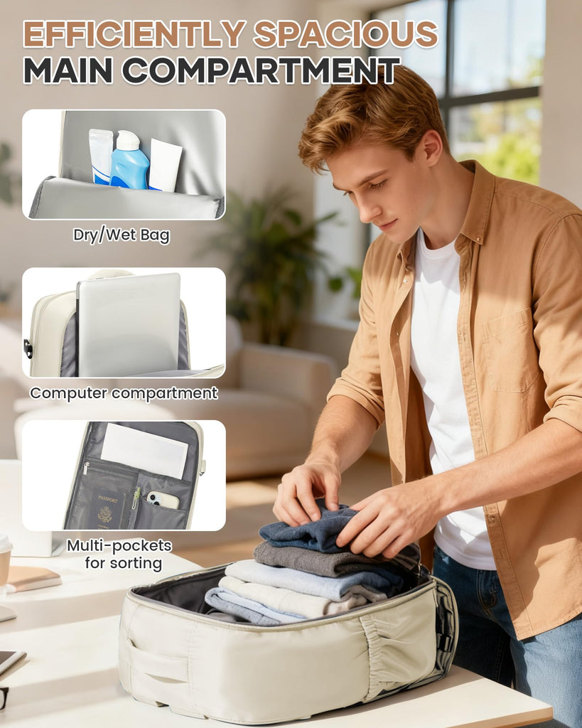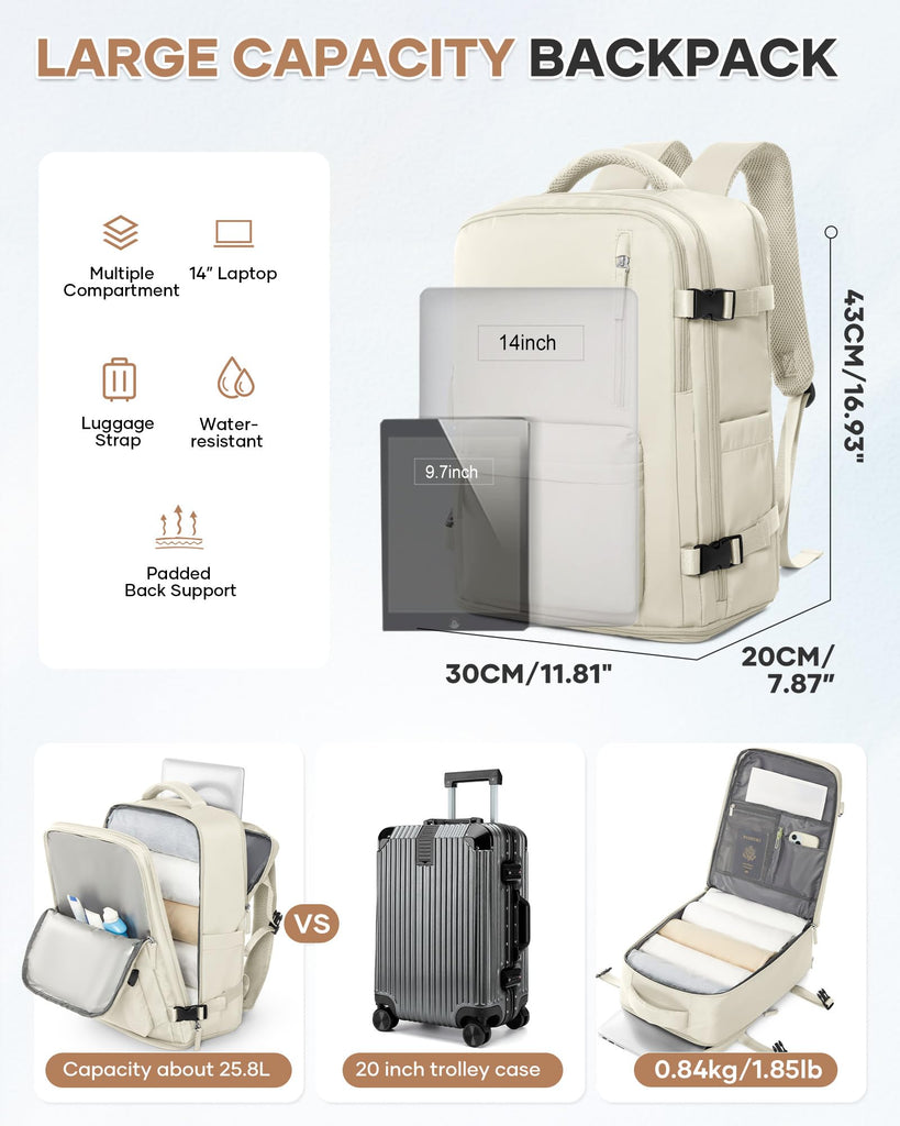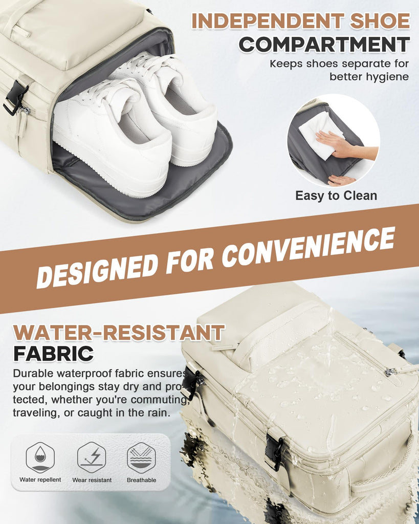 Large Travel Gym Backpack Women Carry On Backpack Flight Approved Hiking Waterproof Rucksack Casual Daypack Laptop bags airplanes Shoes Compartment Personal Item Travel Weekender Bag Essentials Beige