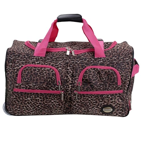 Rockland Rolling Duffel Bag, PINK LEOPARD, 22"