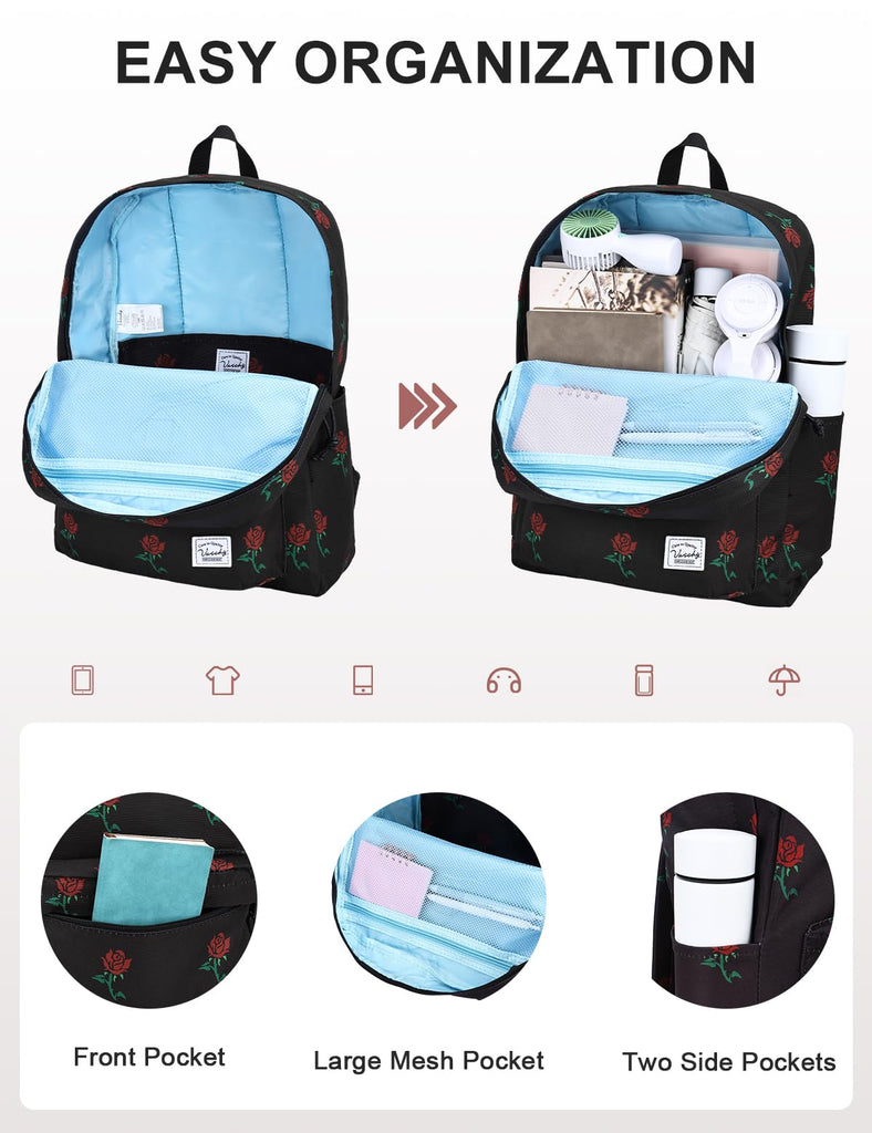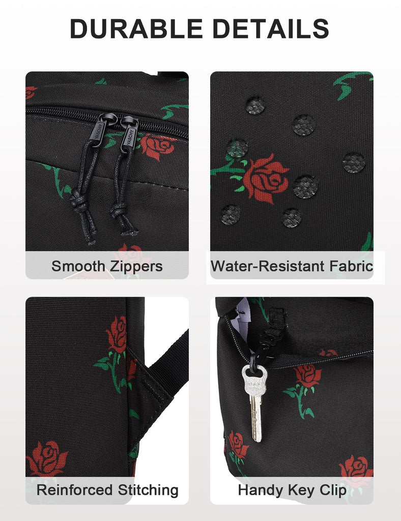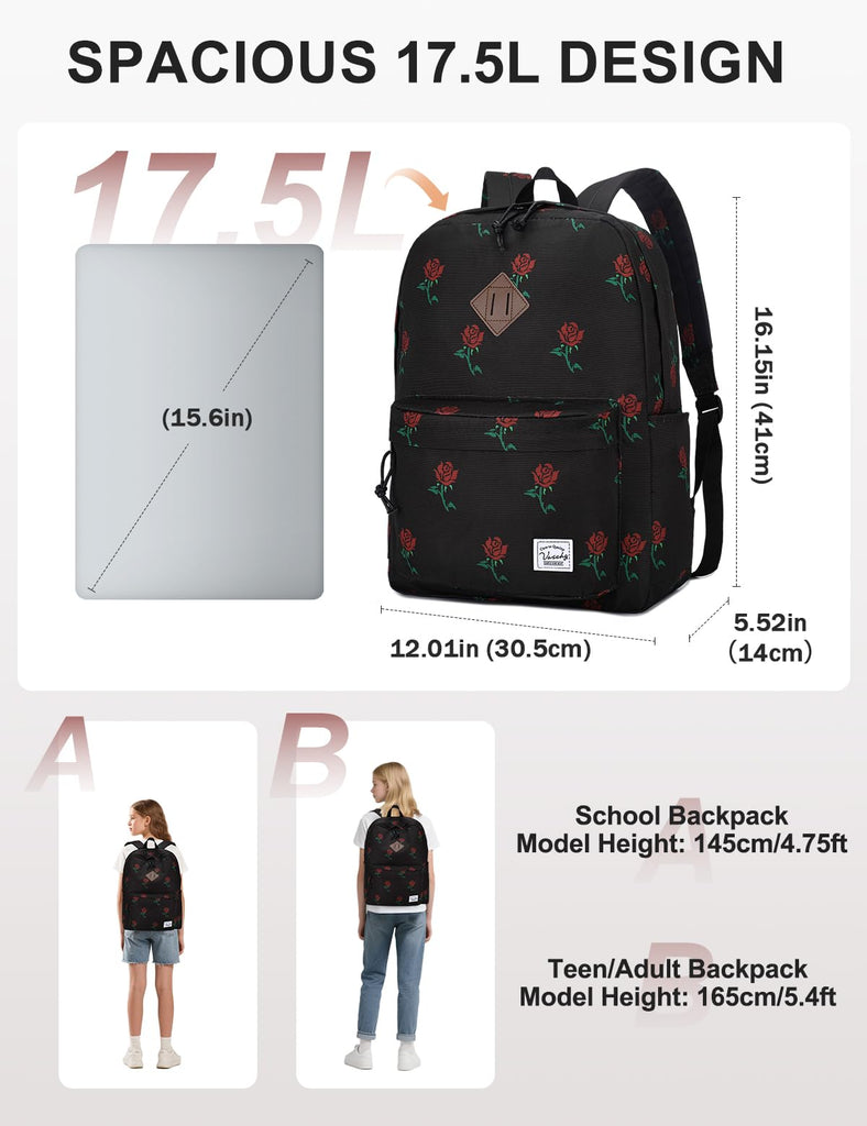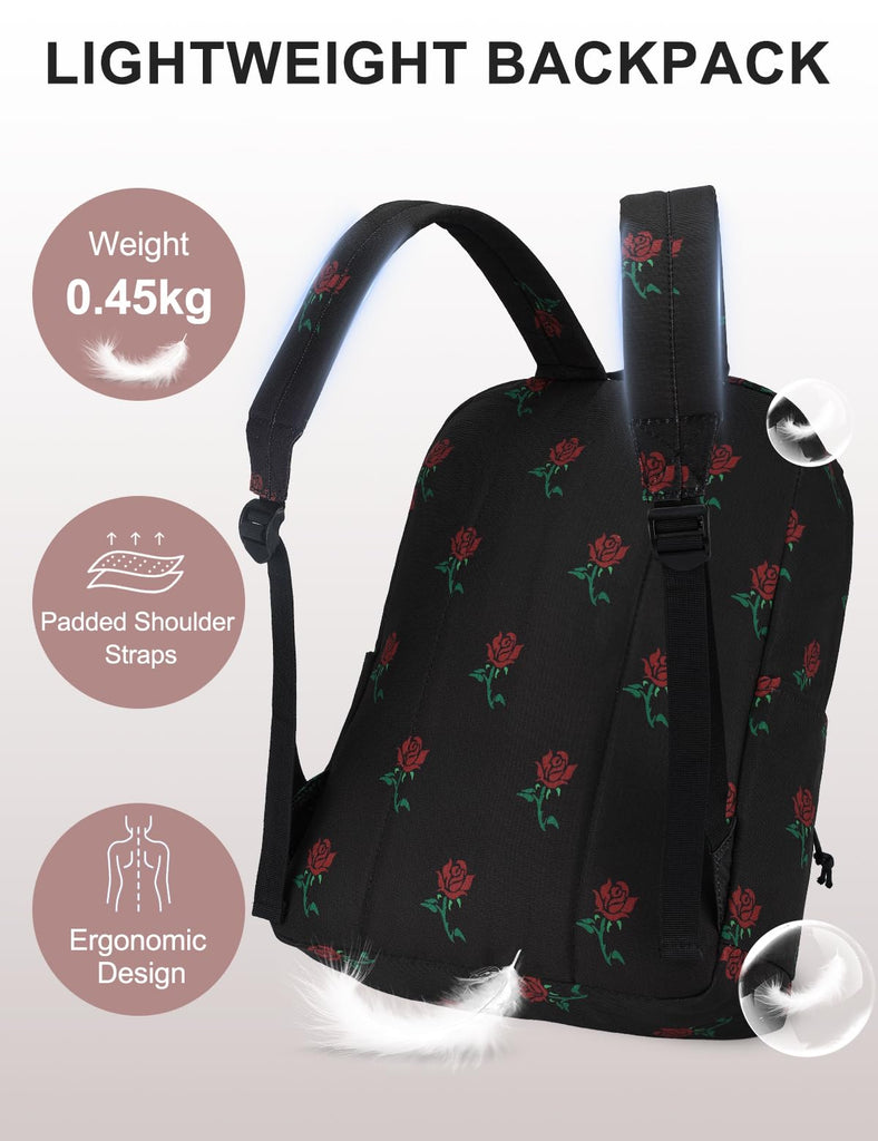 VASCHY Backpack for School, Lightweight Water Resistant Bookbag Casual Daypack for Women/Teen Girls Roses
