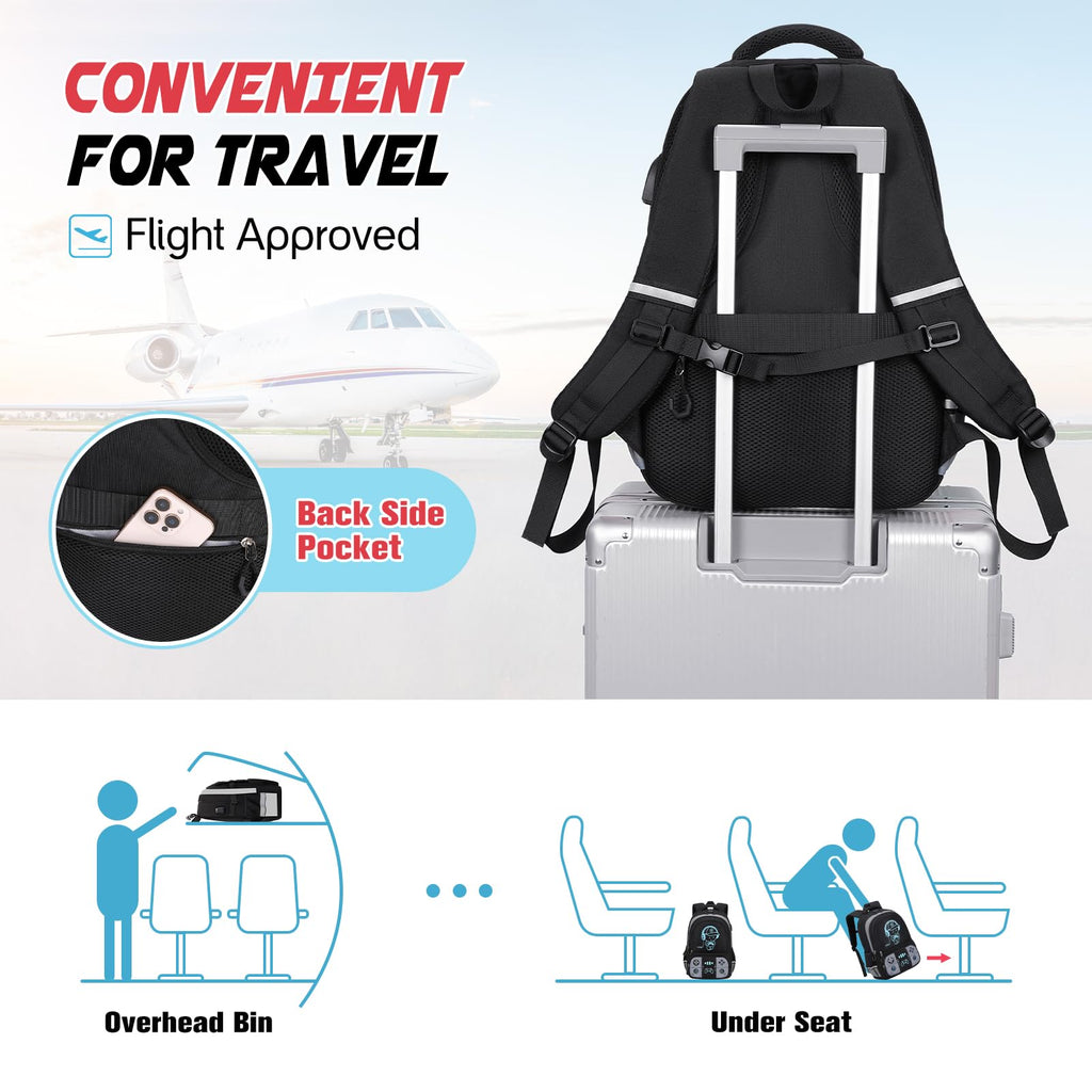 - 【USB Charging Port Kids Backpack】This glow-in-the-dark gamer bookbag has not only a USB port with built-in USB charging cable, but also a headphone interface. After you have finished charging your phone while walking, you can put your device in this kids backpack, and then listen to music through the external Headphone Interface on your backpack. It's ideal for charging your phone while you’re walking, riding a bike, or commuting by train.