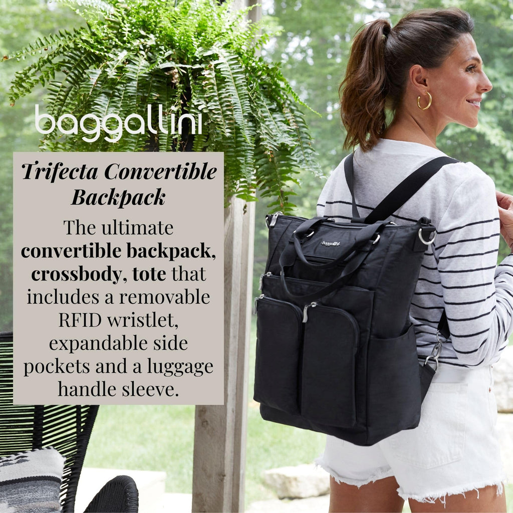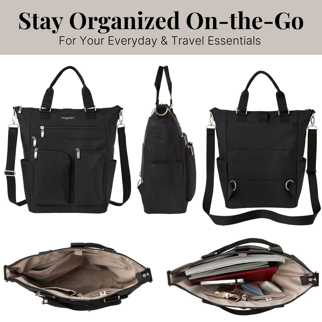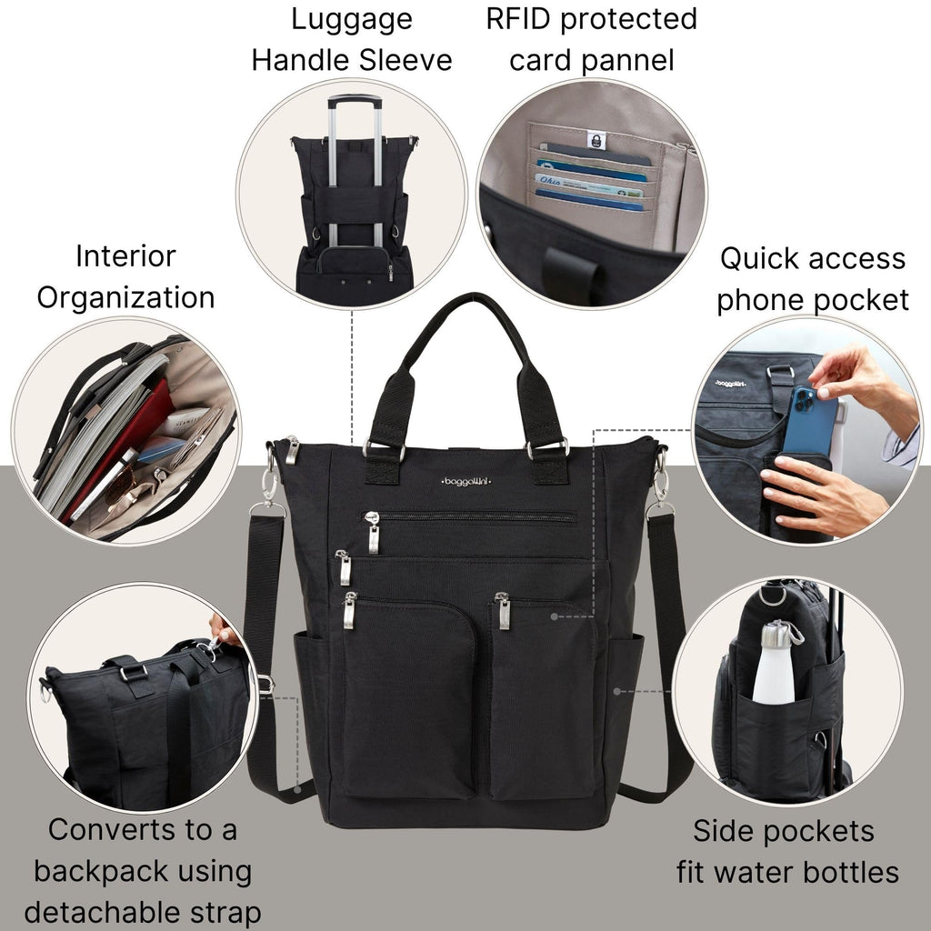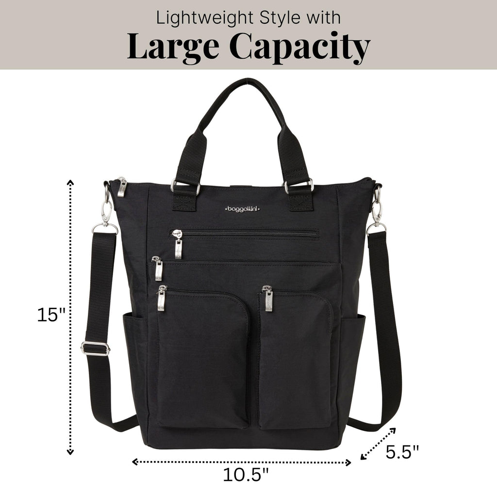 Baggallini All Set 3 in 1 Tote Backpack - 15"x10.5" Lightweight Travel Bag w/RFID Phone Wristlet
