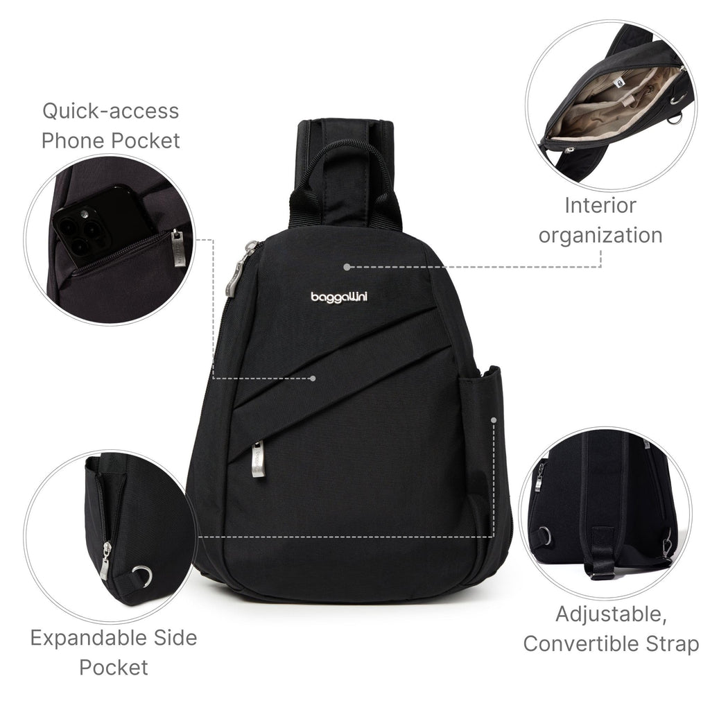 Baggallini Medium Sling Backpack - 9"x11" Lightweight Sling Bag with Convertible Adjustable Shoulder Strap