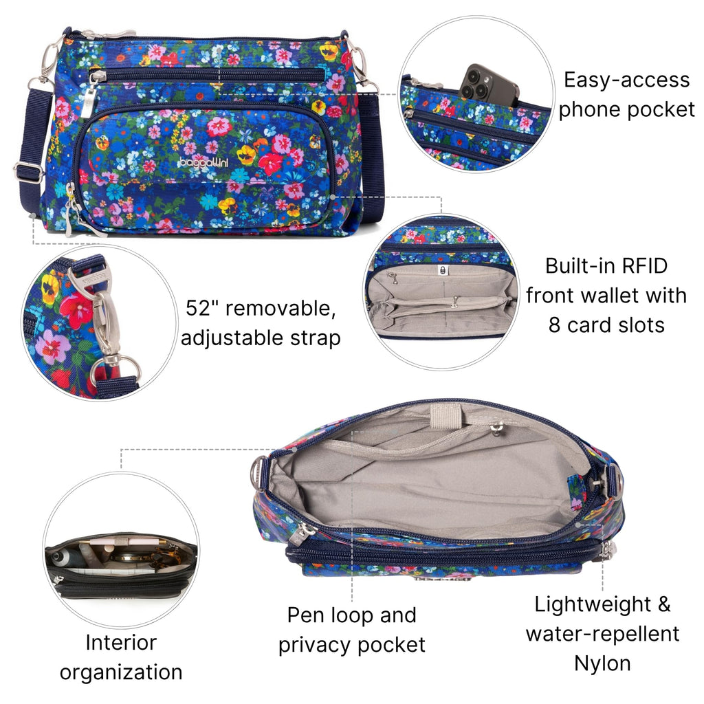 Baggallini Original Everyday 11x 7.5 Crossbody Bags for Women RFID Protected Washable Lightweight Nylon Zippered Travel Purse