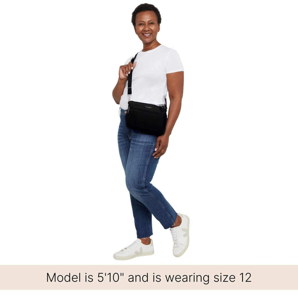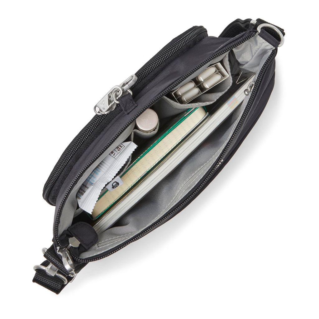Enjoy your next trip worry-free with an anti-theft crossbody bag. The Securtex® anti-theft memento crossbody bag features slash resistant panels, a double-cable cut-resistant strap, locking zippers, and RFID-protection. It protects your things, so you can focus on the journey.