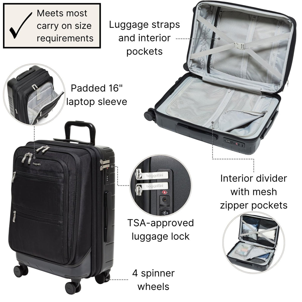 Baggallini Set Wave 22” 4 Wheel Hybrid Carry-On Luggage - Lightweight Carry On Suitcase with Wheels