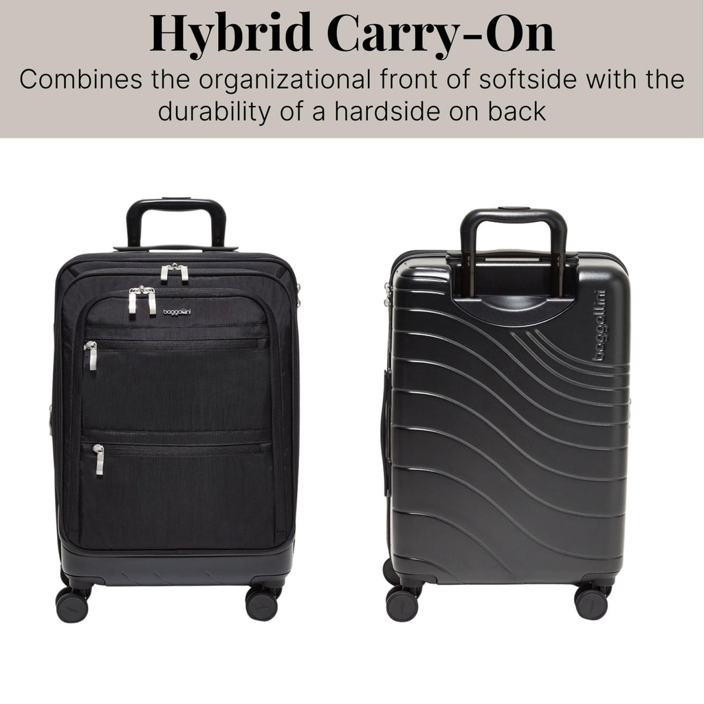 - HYBRID HARDSIDE + SOFTSIDE DESIGN: Combines the structure and protection of a hard shell back with the flexible storage and accessibility of a softside front; perfect for travelers seeking hybrid carry-on luggage that offers both durability and functional organization.