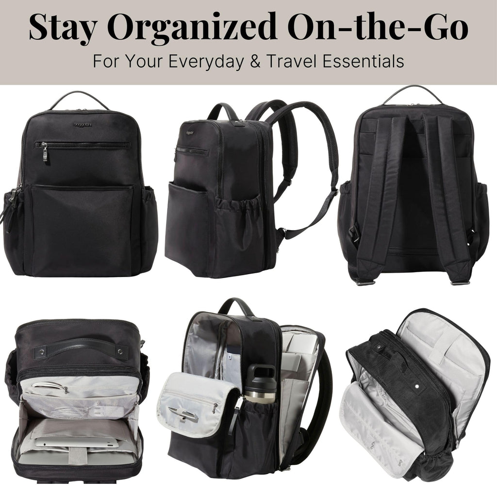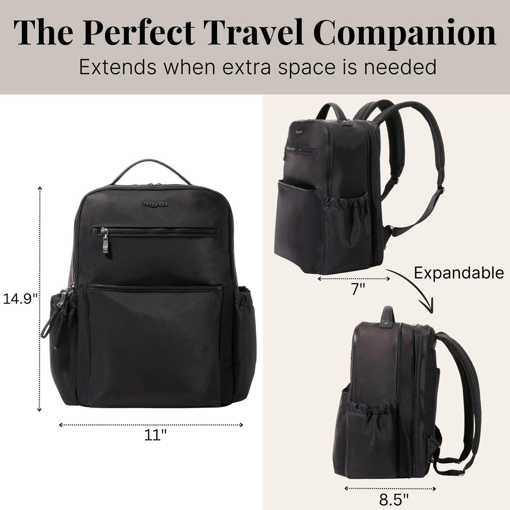 Baggallini Tribeca Expandable Laptop Backpack - 15"x11" Lightweight RFID Computer Bag for Work & Travel with Luggage Sleeve