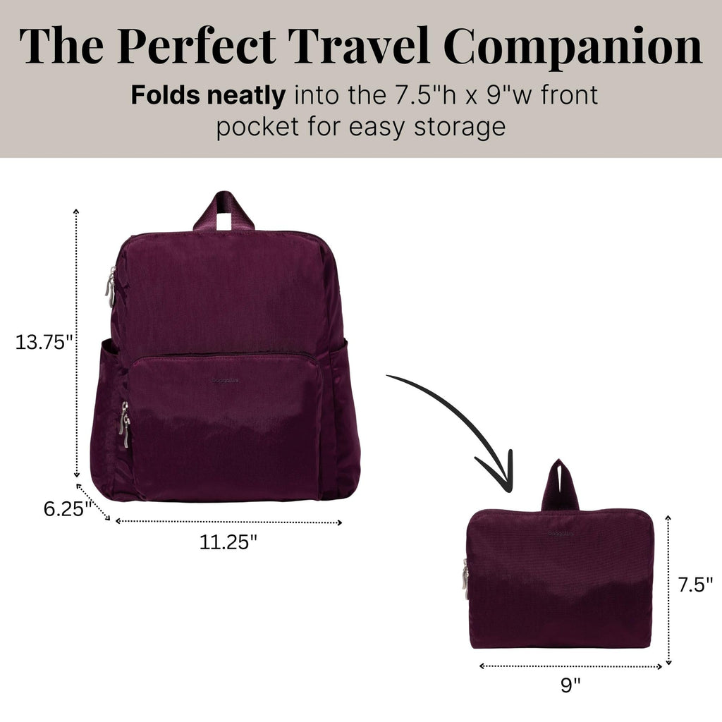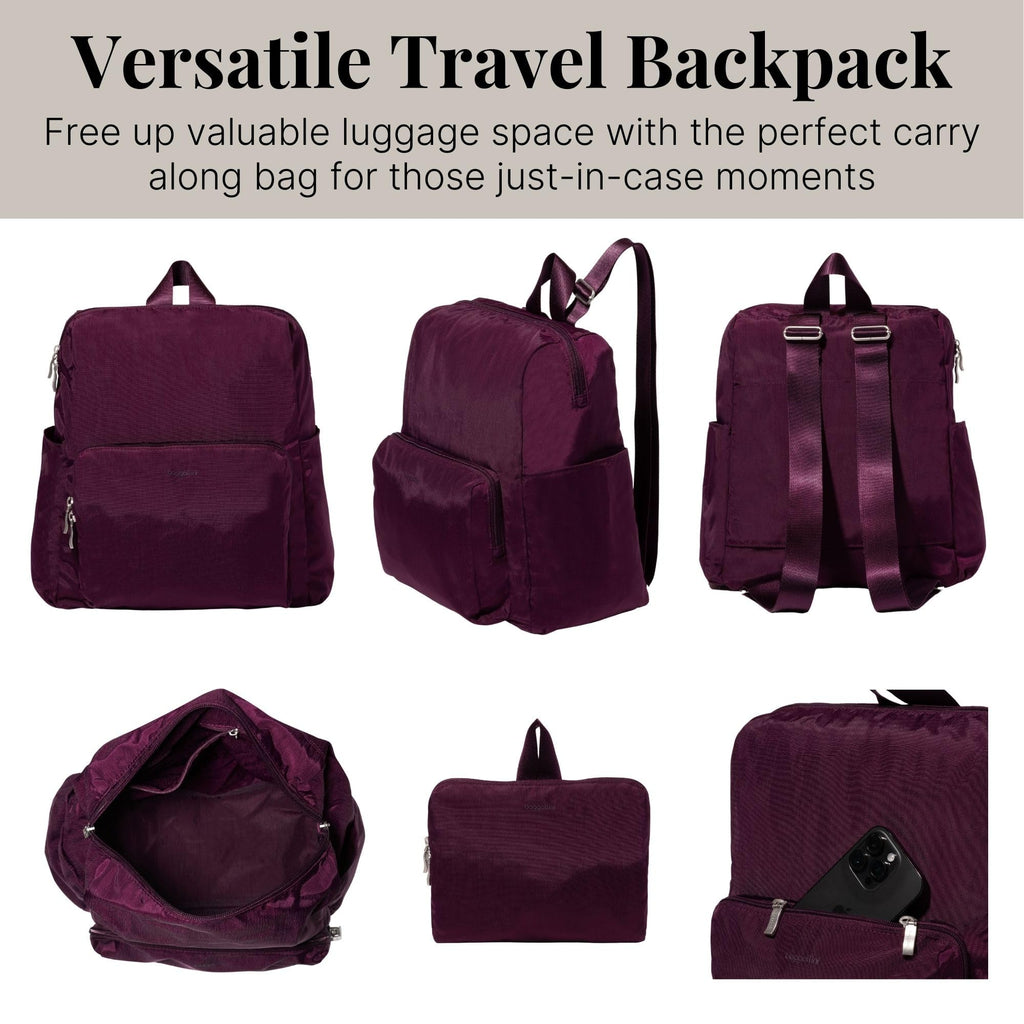 Baggallini Women's Carryall Packable Backpack, Mulberry