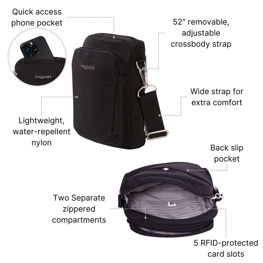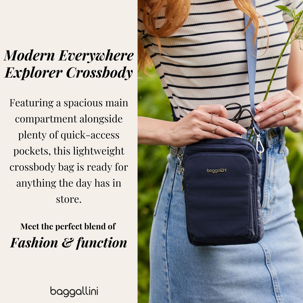 Baggallini Womens Modern Everywhere Explorer Crossbody, Black
