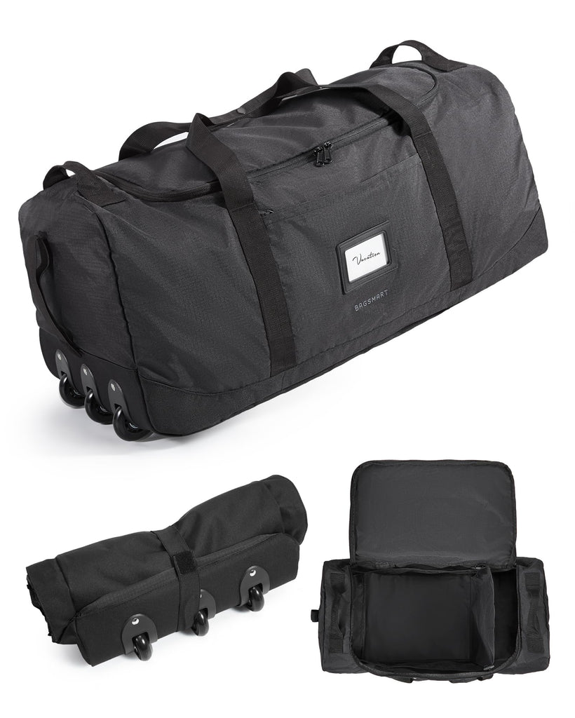 Brand: BAGSMARTColor: BlackFeatures: Built Large, Built Tough: 70L large capacity, 27.2 * 13.4 * 11 inches, comparable to a 26-inch suitcase. Crafted from water-resistant, tear-proof material, this large rolling duffle bag is designed to handle rough travel, outdoor trips, and...