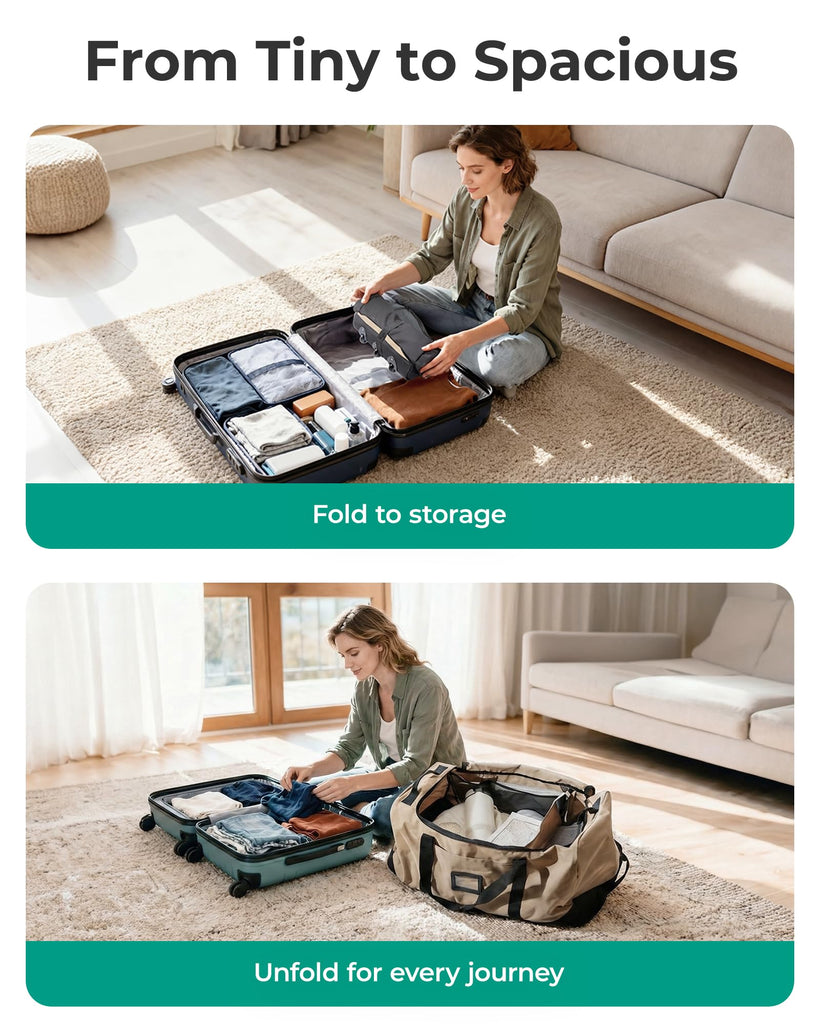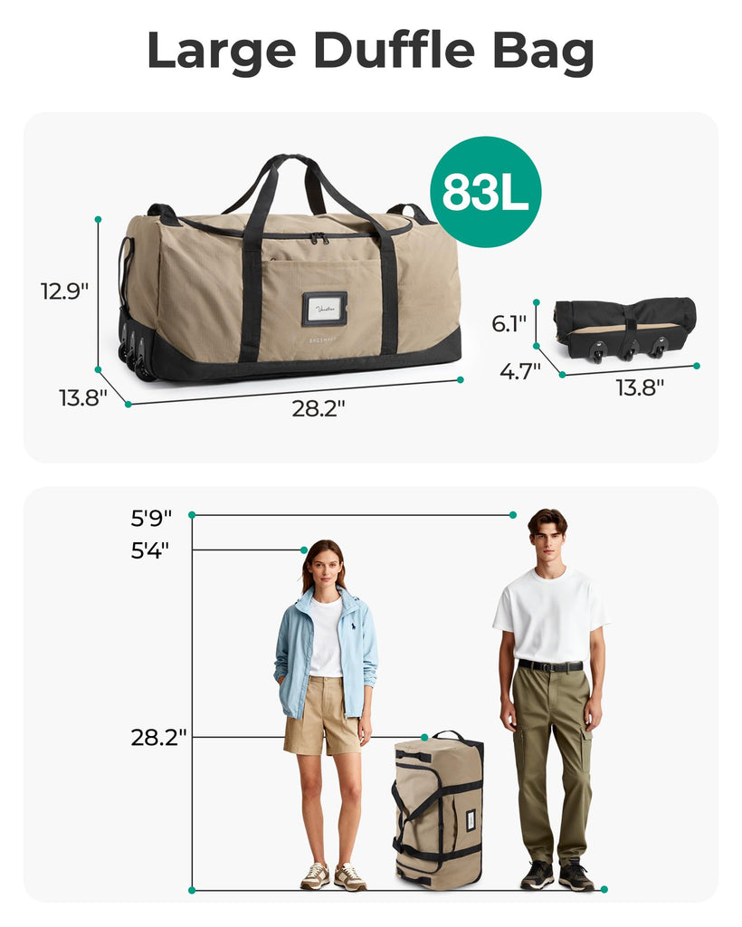 - "Just In Case" Bag: It quickly compacts into a compact size for easy storage in your main luggage or closet, then unfolds in seconds to a full 83L duffel bag. This seamless transformation makes it the perfect extra travel bag for spontaneous shopping, souvenir hauls, or as a must-have backup bag for any trip
