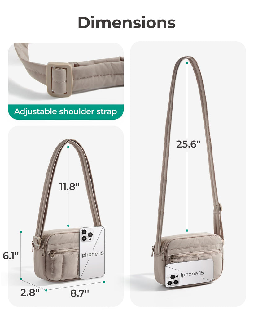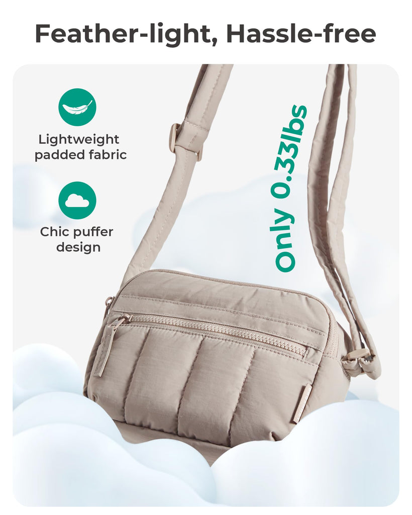 - Material & Size: Lightweight & water-resistant puffy crossbody bag (just 0.33lbs)! Compact size 8.7''x2.8''x6.1'' with 2.4L capacity - perfect daily essentials