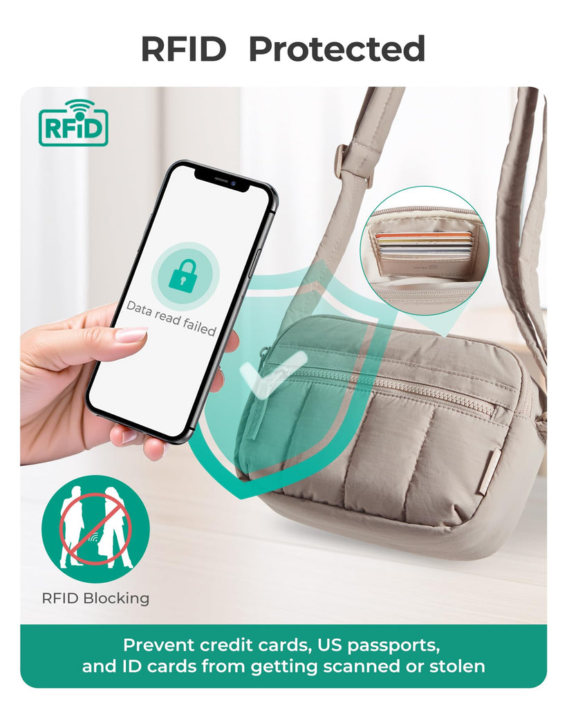 - RFID Blocking Security: Cross body purse built-in front wallet pocket includes five RFID-protected card slots, keeping your credit cards and ID safe from electronic theft
