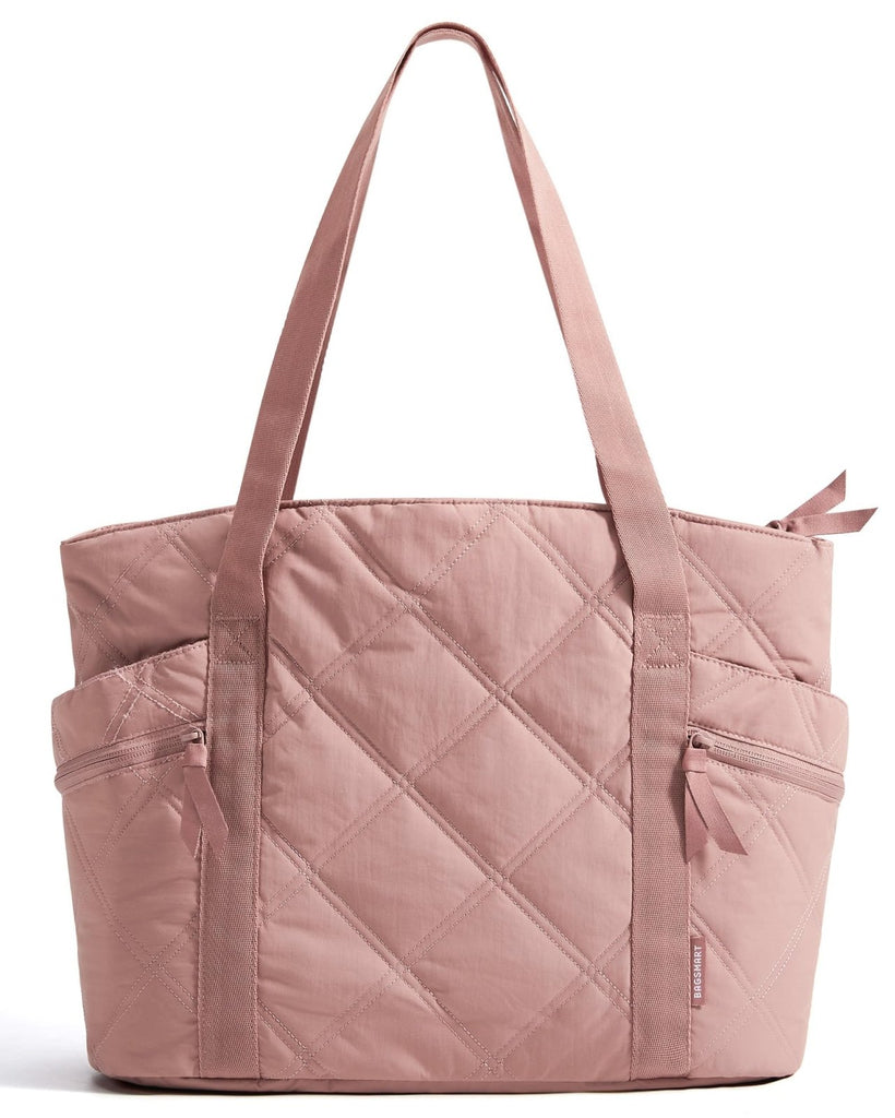 BAGSMART Crush Tote Bag for Women, 20L Puffer Work Tote with Zipper, Travel Essentials Quilted Nurse Hospital Bag, Pink