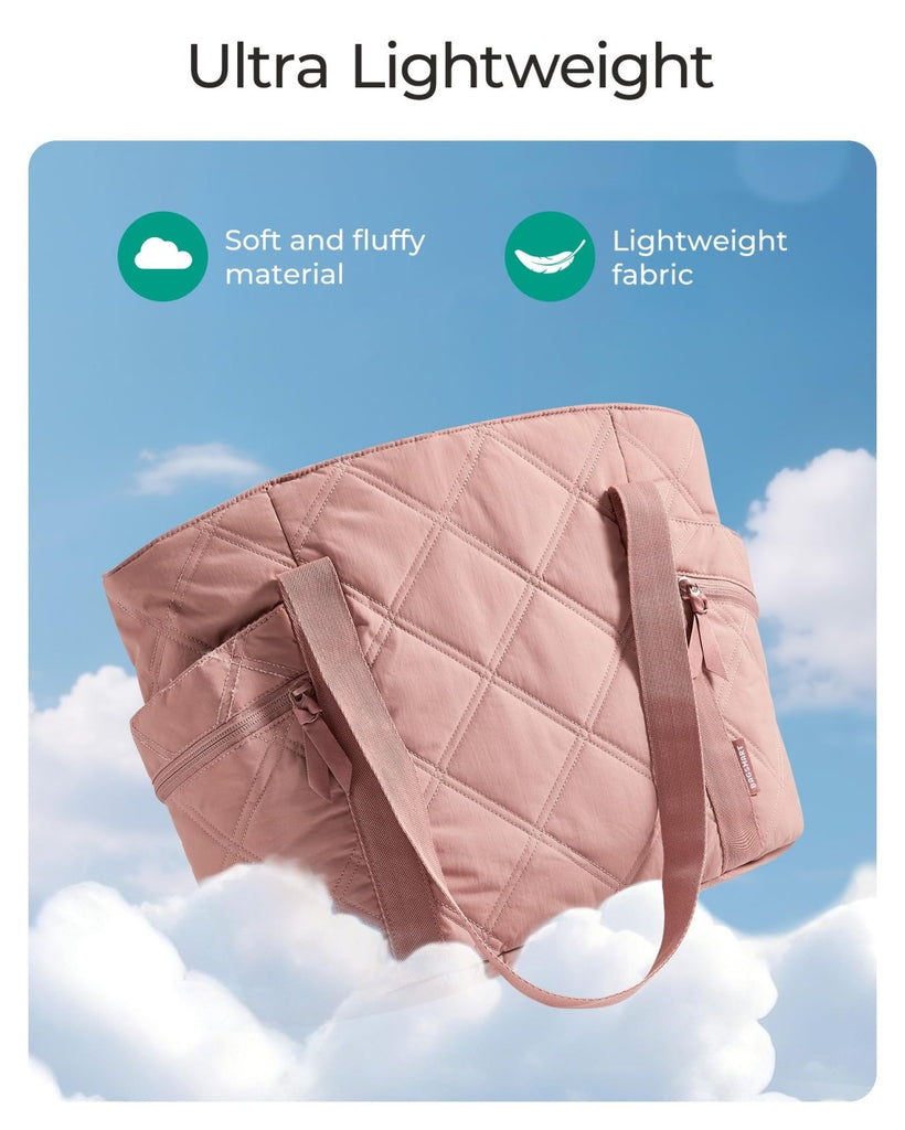BAGSMART Crush Tote Bag for Women, 20L Puffer Work Tote with Zipper, Travel Essentials Quilted Nurse Hospital Bag, Brier Rose