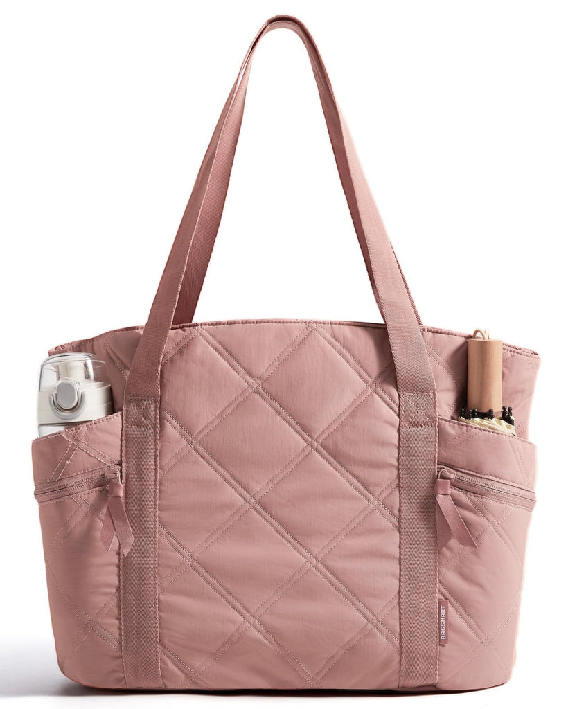 Brand: BAGSMARTColor: Brier RoseFeatures: 20L Capacity: 15.6*6.3*12.6 inches, 20L large capacity for all your items. Ultra lightweight yet substantial, ideal for carrying daily supplies. The stylish quilted and puffy tote design can match any outfit. Zipper closure prevents your stuff from getting lost Built To Last: The reinforced BAGSMART gym...
