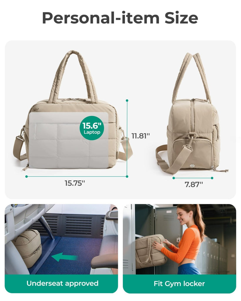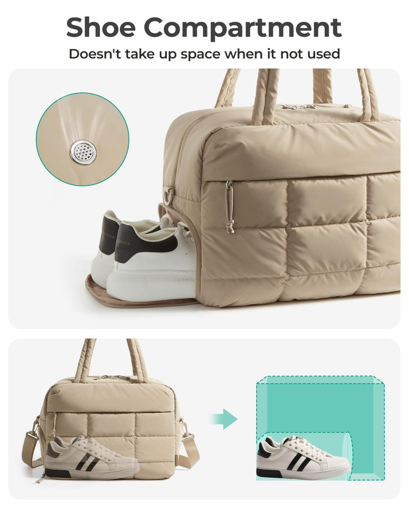 Brand: BAGSMARTColor: M-DesertFeatures: 23L Puffy: BAGSMART gym bag offers a comfortable carrying experience, whether sling it on buses or plop it on soggy fields. Popular puffer design makes it lightweight yet spacious, water-resistant fabric, don't worry about rainy days Laptop & Shoe Compartment: A clean duffle bag is always a...