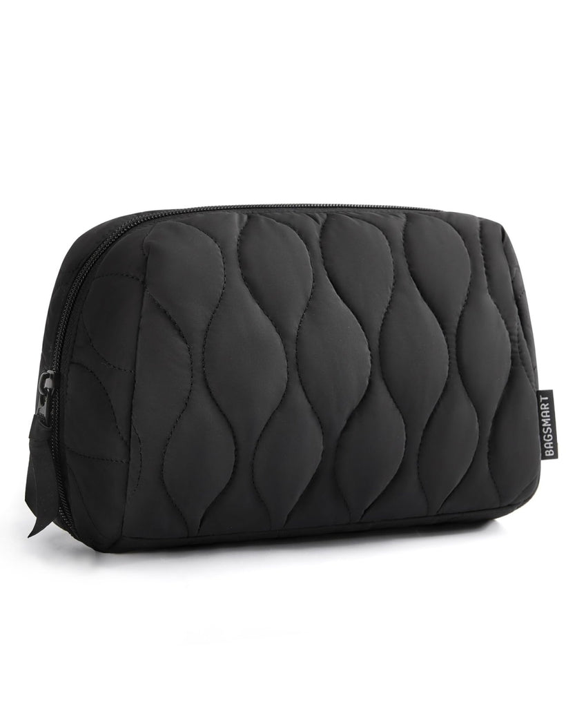BAGSMART Makeup Bag, Travel Cosmetic Bag, Puffy Padded Make Up Bag for Women, Makeup Organizer Case, Wide-open Pouch Purse, Travel Essentials, Toiletries Accessories Brushes, Black