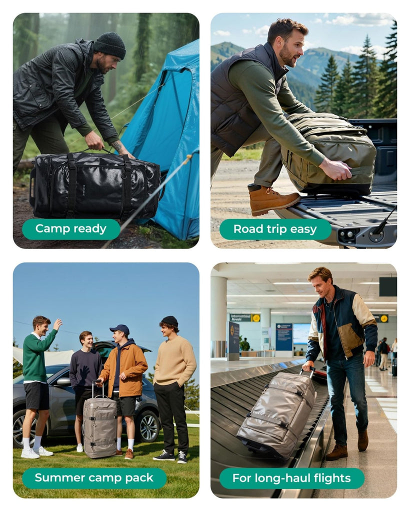 - Move Easily, Anywhere You Go: Smooth-rolling oversized wheels, a two-stage pull handle, and multiple carry handles make transport effortless—whether at the airport, camp, or on the road