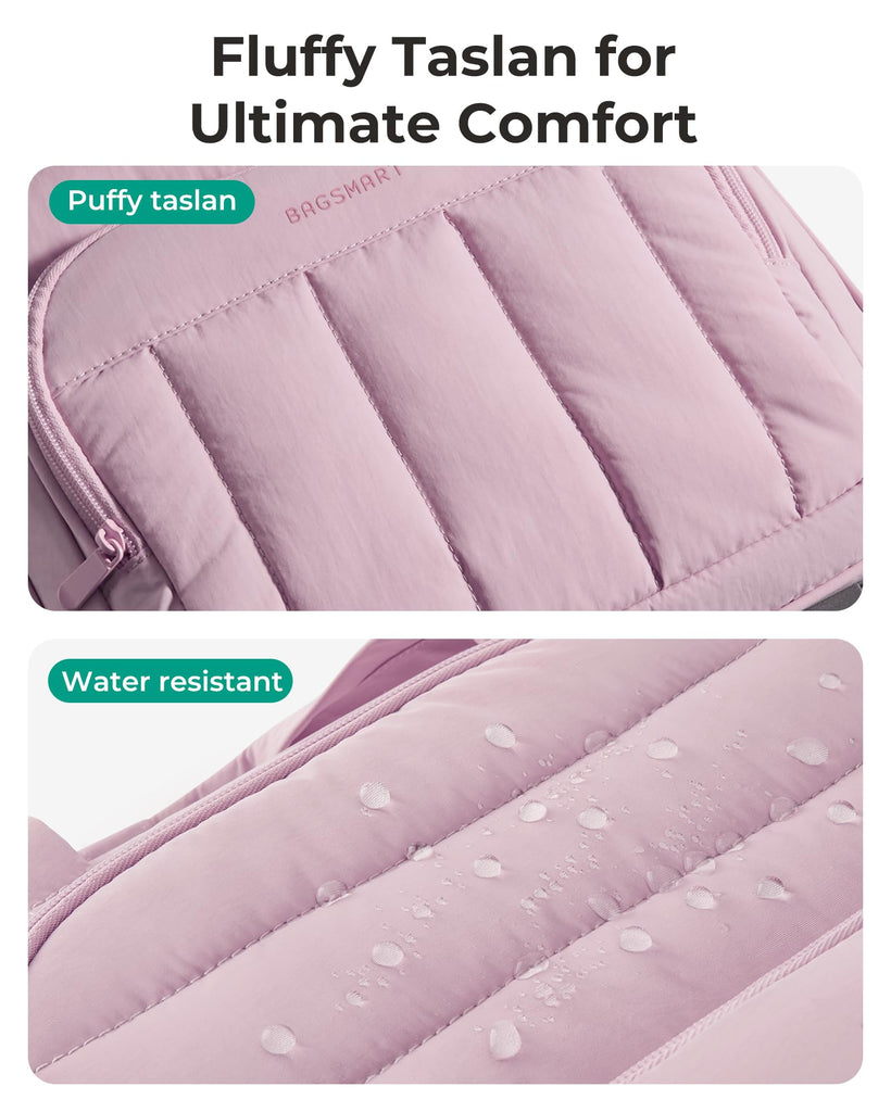 BAGSMART Crush Tote Bag for Women, 20L Puffer Work Tote with Zipper, Travel Essentials Quilted Nurse Hospital Bag, Pink