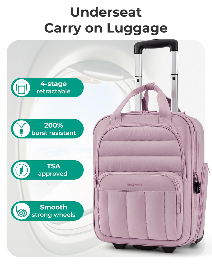 - Hassle-free Travel: The luggage strap on the back lets you stack your underseat luggage atop your larger carry-on luggage, while silent double wheels ensure smooth movement in any scenario, no longer burdened by a heavy backpack on your shoulders!
