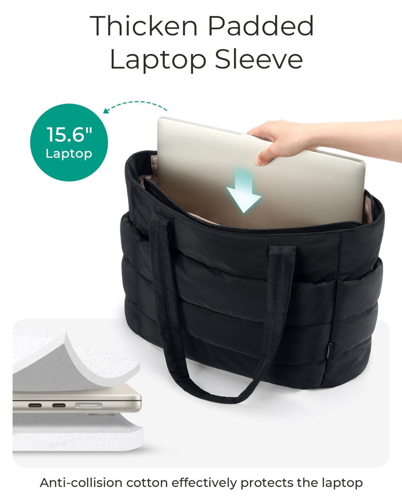 BAGSMART Tote Bag for Women, Lightweight Puffy Tote Bag with Compartments Shoulder Bag Handbag Quilted Shoulder Bag Handbag for Travel, Work, Beach, Gym, Shop (Black)