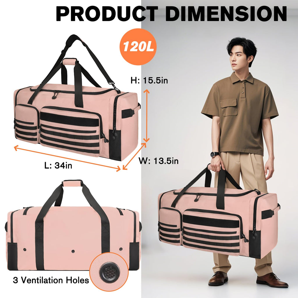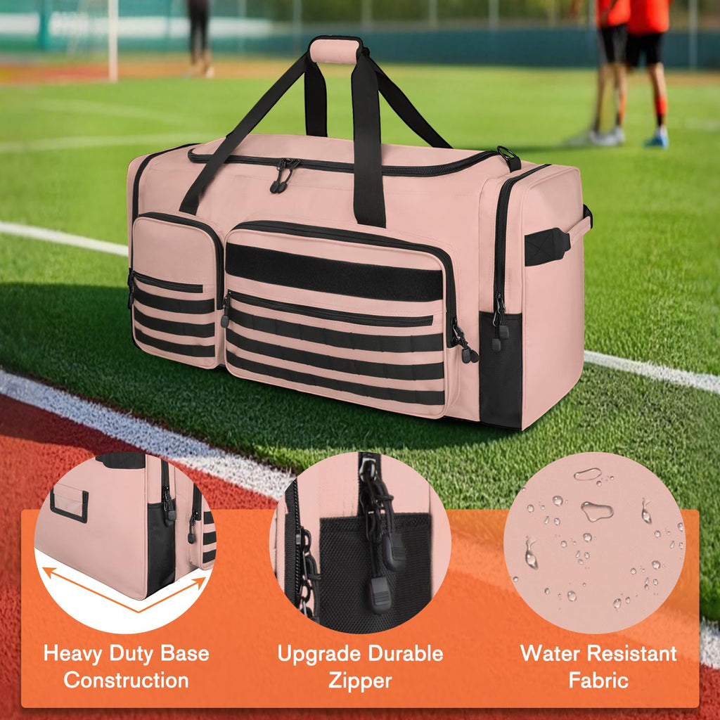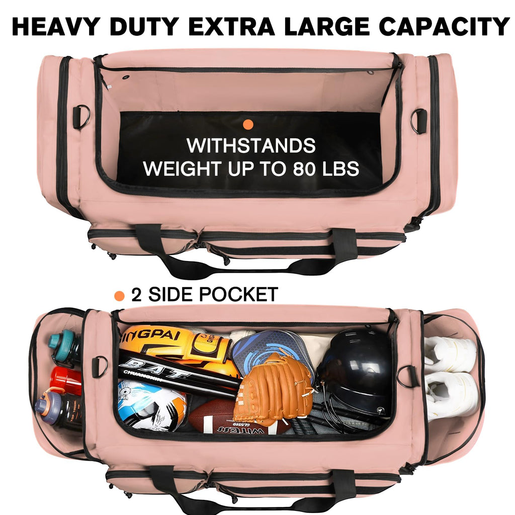 Brand: GoloniColor: PinkFeatures: Extra-Large Capacity:This large duffle bag has an impressive 130L capacity and measures 35"x16"x15". It can easily hold large sports equipment such as basketballs, baseballs, hockey balls, and footballs, as well as items like helmets and protective gear. Whether for workouts or extended journeys, this extra large sports...