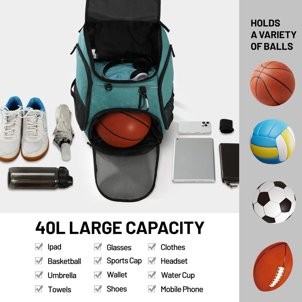 MIER Gym Backpack 40L Basketball Backpack with Ball Compartment & Shoes Storage Multi-Functional Sports Soccer Bag Large Equipment Back Pack Volleyball Backpacks for Men Women, Light Green