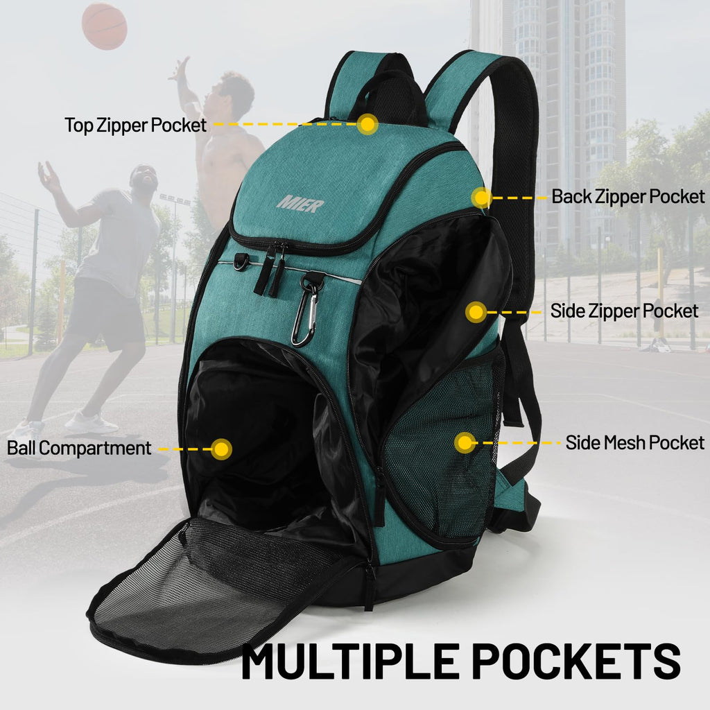 Brand: MIERColor: Light GreenFeatures: Separate Ball and Shoes Compartment: MIER sports backpack designed with an independent ball compartment for footballs, basketballs, volleyballs, etc. Keep your shoes and dirty gear separate. Suitable for most sizes of shoes or balls. Spacious Capacity: The basketball bag has a capacity of 40L and measures...