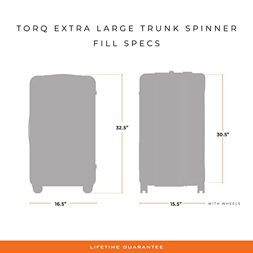 - EXTRA LARGE SUITCASE - The Torq Extra Large Trunk Spinner sets a new bar for large trunk luggage with its abundant space and scratch-resistant polycarbonate construction