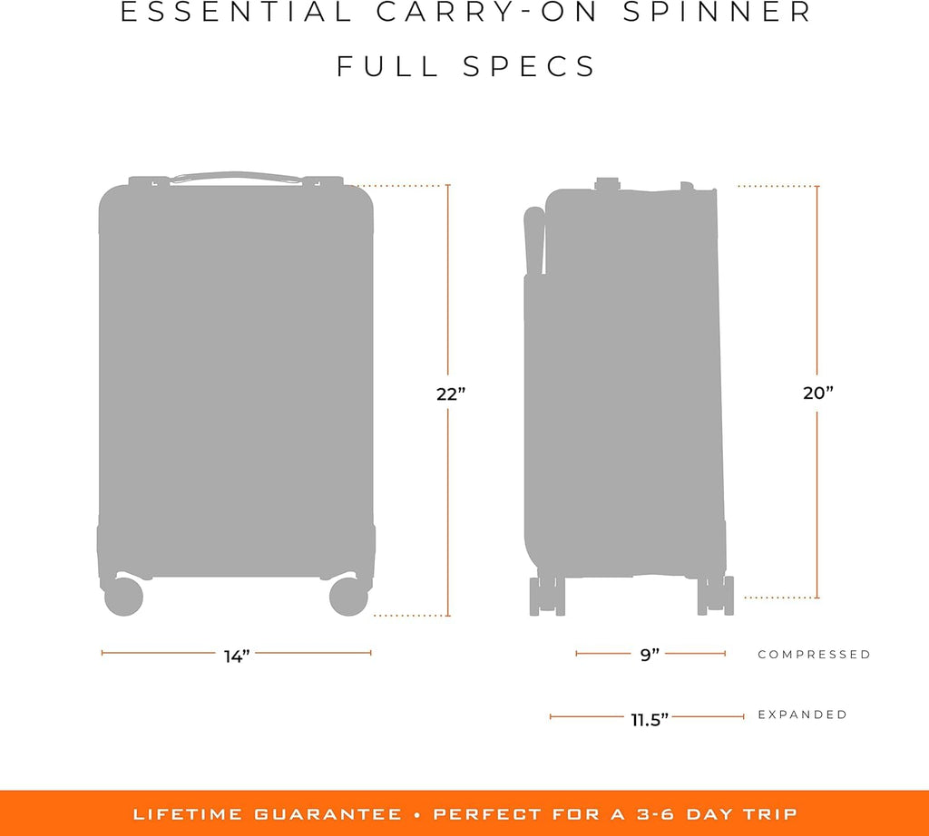 - DOMESTIC CARRY-ON LUGGAGE - Measuring 22" x 14" x 9-11.5", this expandable packing system enlarges to become astonishingly roomy, then compresses to easily fit most US overhead bins