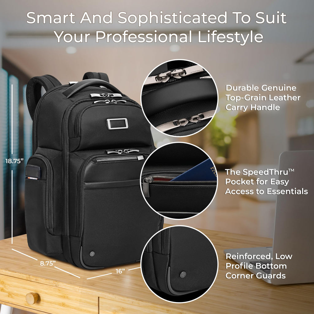 Briggs & Riley Large Cargo Backpack for Women & Men - Laptop Backpack, For Work & Travel, Spacious & Durable, Padded Straps, Fits up to 17" Laptop - @work Collection, Black