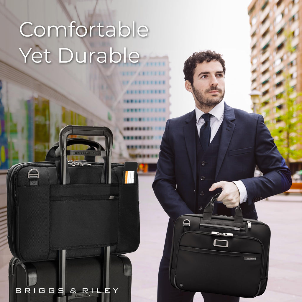 Brand: Briggs & RileyColor: BlackFeatures: EXPANDABLE DESIGN - Effortlessly adjust the brief's capacity with expansion zippers, adding up to 2.5 inches of extra space for last-minute items while maintaining a sleek and compact profile THOUGHTFUL ORGANIZER - This case features three well-organized sections, including a dedicated tech compartment with a...