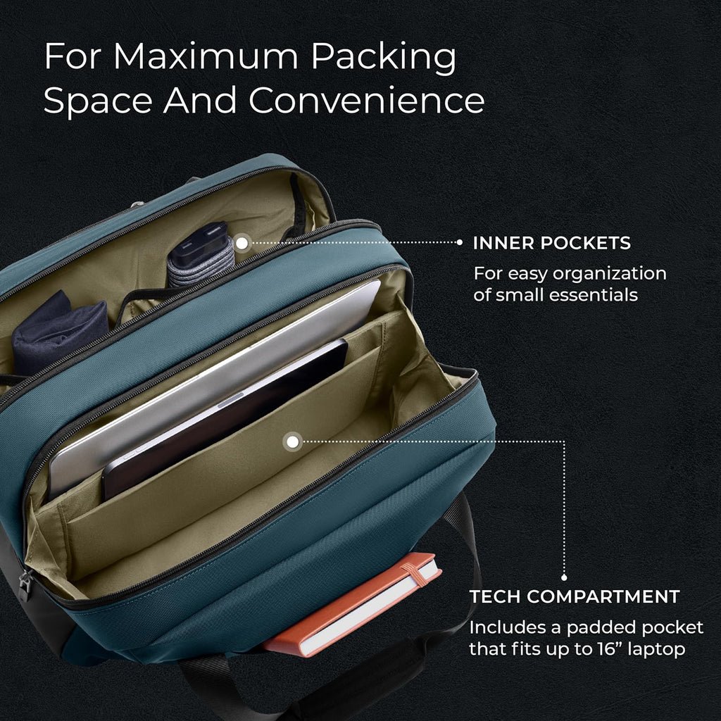 - SECURE ORGANIZATION - This bag contains a spacious main compartment with multiple interior pockets, including an integrated tech pocket that fits a 16" laptop to keep you connected and protected