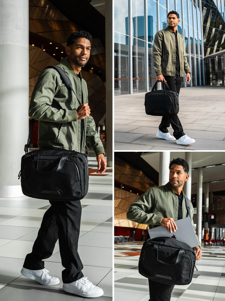 The ALPAKA Bravo Brief represents the perfect balance of professional style and practical functionality for modern professionals and travelers. This precision-engineered 16-inch laptop briefcase protects your technology with a cushioned reinforced laptop sleeve and dedicated tablet compartment featuring soft-touch lining that prevents scratches during business trips and daily commutes. The intelligent interior organization includes six slip pockets, two pen slots, a mesh zipper pocket, and an internal water bottle pocket - everything has its place so you can find what you need in seconds. Quick-access features like the key tether and magnetic rear pocket keep essentials within reach when you're rushing through airports or heading into meetings. Built with recycled Axoflux 400D ripstop nylon and reliable YKK AquaGuard water-resistant zippers, this briefcase stands up to daily wear and unpredictable weather while maintaining its classic, elegant appearance. The versatile carrying system adapts to your needs - use the comfortable padded handles as a traditional briefcase,attach the removable shoulder strap for messenger bag convenience, or utilize the luggage pass through to secure it to your rolling suitcase. Despite its compact profile, the Bravo Brief accommodates laptops, tablets, documents, charging cables, power banks, and all your work essentials. Whether you're a business professional navigating city commutes, a student heading to campus, or a traveler managing multiple destinations, this laptop messenger bag delivers organized storage and device protection in a package that looks as good in the boardroom as it does at the coffee shop. Professional-grade quality meets everyday versatility in one exceptional briefcase.