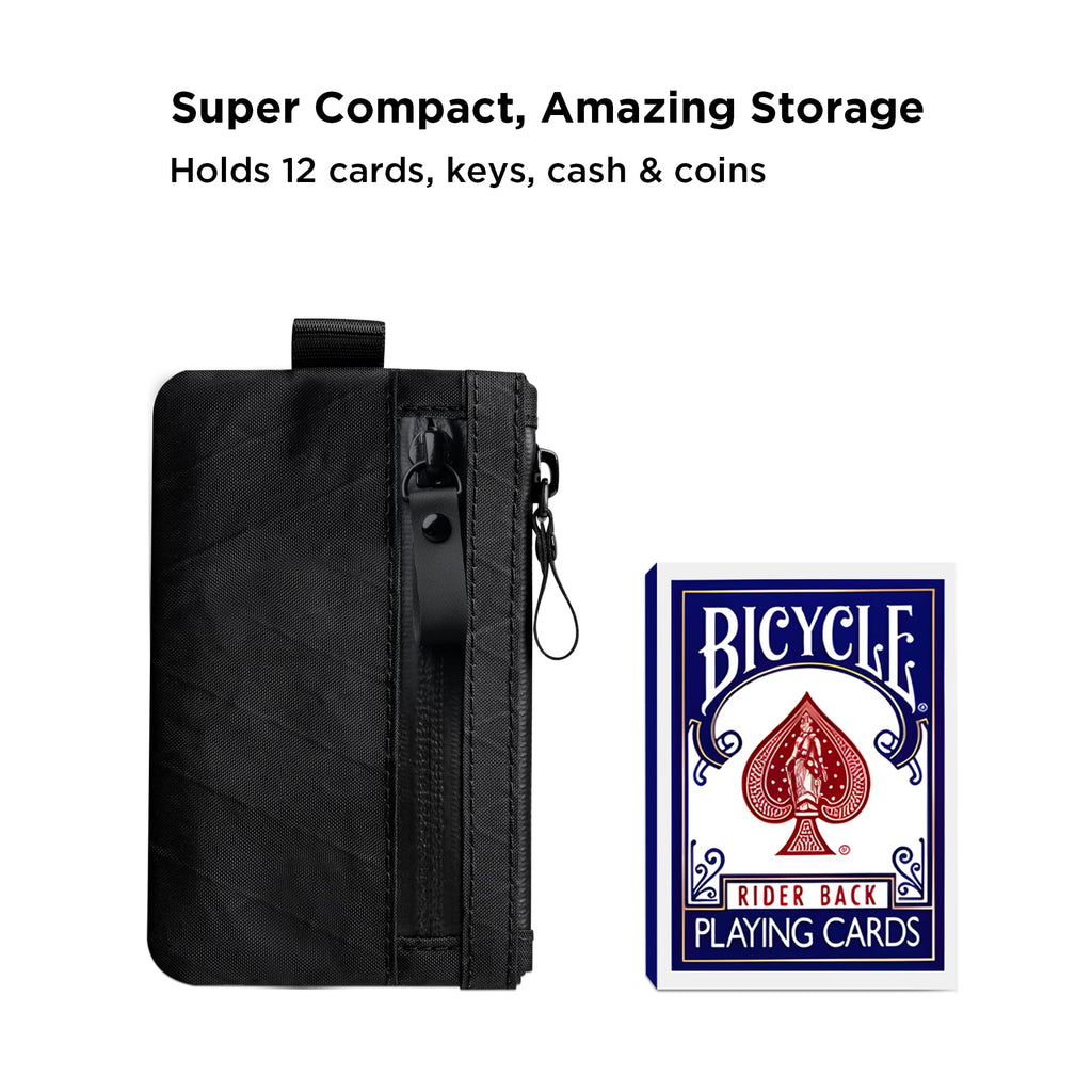 - Slim Card Wallet: Stow your cards and cash quickly in our smallest pouch. Designed for those who want to carry as little as possible, the ALPAKA Zip Pouch securely stores frequently used items like credit cards and bank notes. There’s also an extra pouch for coins or other smaller items.