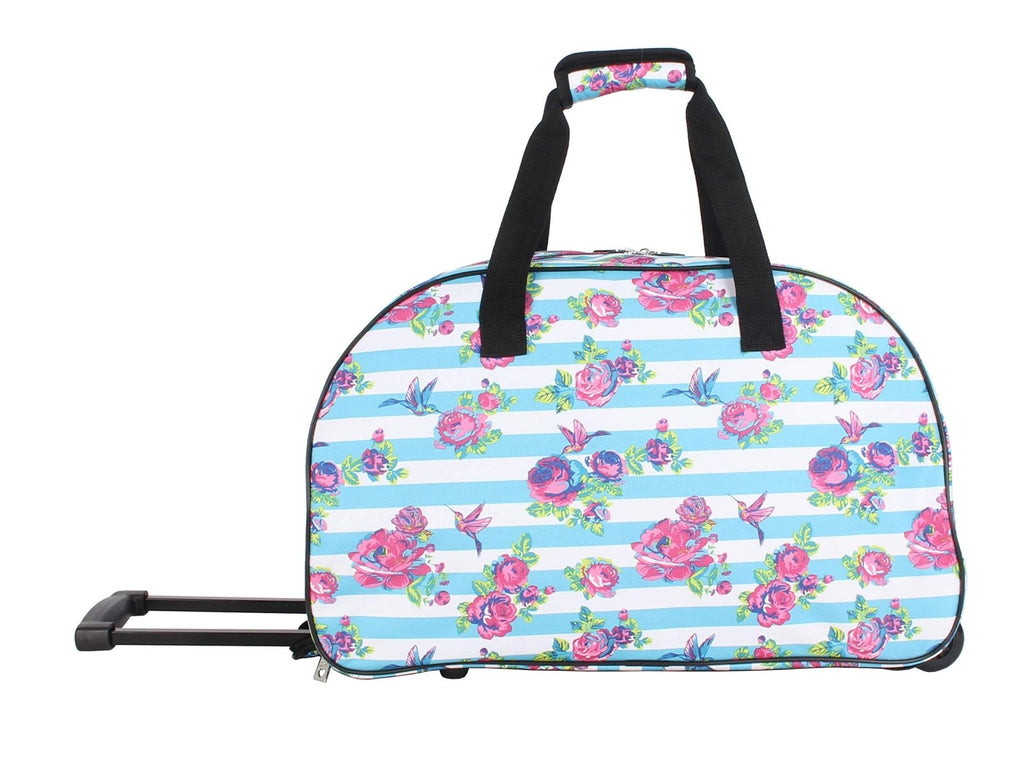 Betsey Johnson Designer Carry On Luggage Collection - Lightweight Pattern 22 Inch Duffel Bag- Weekender Overnight Business Travel Suitcase with 2- Rolling Wheels (Stripe Floral)