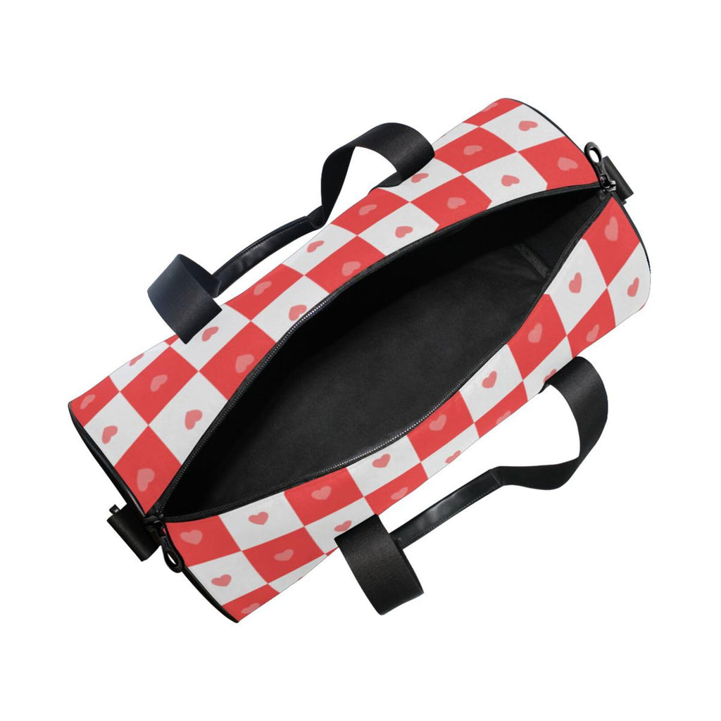 Buffalo Plaid Check Red Heart Large Capacity Luggage Travel Bag Business Trips Travel Weekender Gear Bag