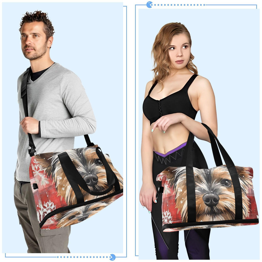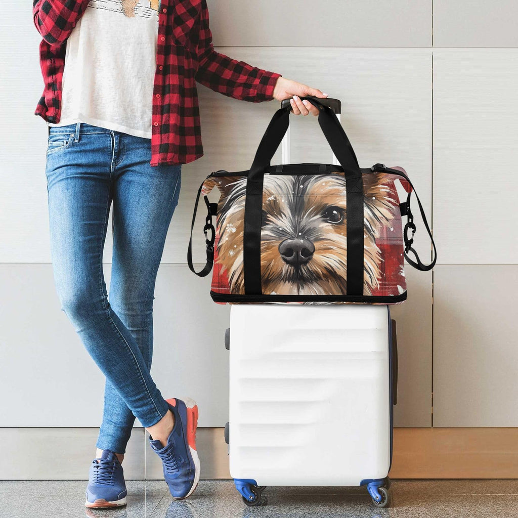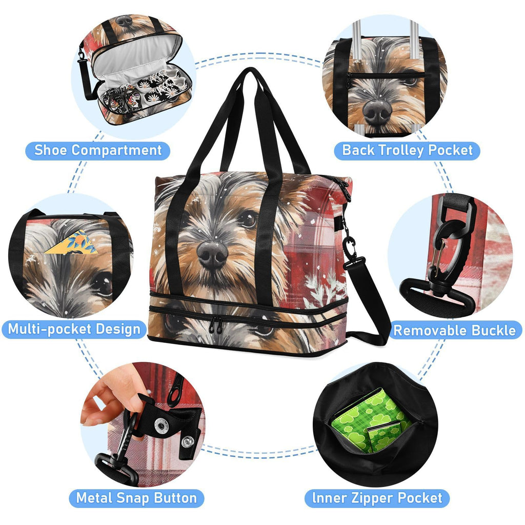 Colorful Dog Buffalo Plaid Snowflakes Christmas Travel Duffel Bags Travel Weekender Gear Bag with Toiletry Bag for Business Trips 2 Pcs Set