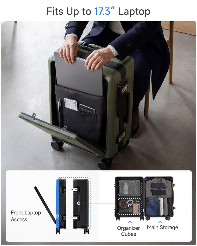 - Quick-Access Front Opening for 17.3" Laptops - TSA Approved Say goodbye to airport unpacking hassles! Our patented front-opening design lets you access your laptop in seconds. The padded compartment fits laptops up to 17.3 inches, making TSA security checks a breeze. Perfect for business travelers who value efficiency and convenience.