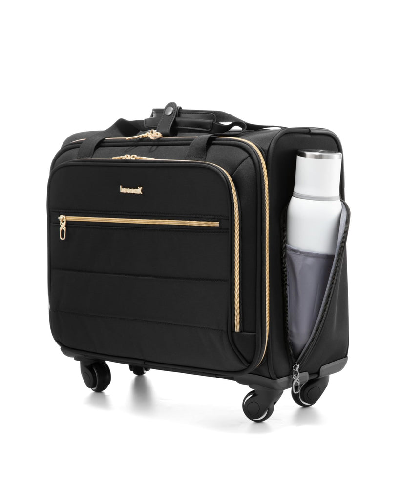 LUGGEX Rolling Laptop Bag with Wheels, 17.3" Soft Sided Laptop Rolling Briefcase with 4 Spinner Wheels & Aluminum Handle - Lightweight Carry On for Business Travel Overnight (UDS-Core, Black, 18 Inch)