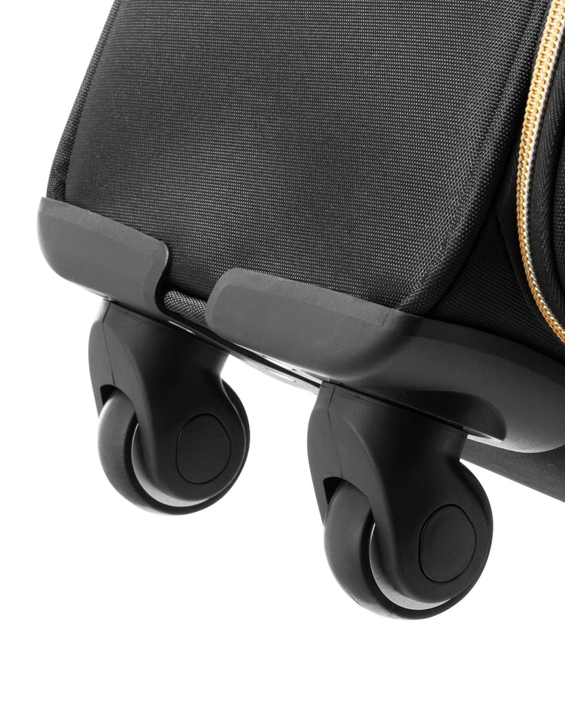 - Four multi-directional spinner wheels glide silently over any surface, providing 360° mobility and reducing wrist strain through busy terminals. The high-density rubber wheels are wear-resistant and engineered for quiet operation—no noisy dragging sounds. Enjoy a smooth, stable ride whether navigating airport corridors or city sidewalks.