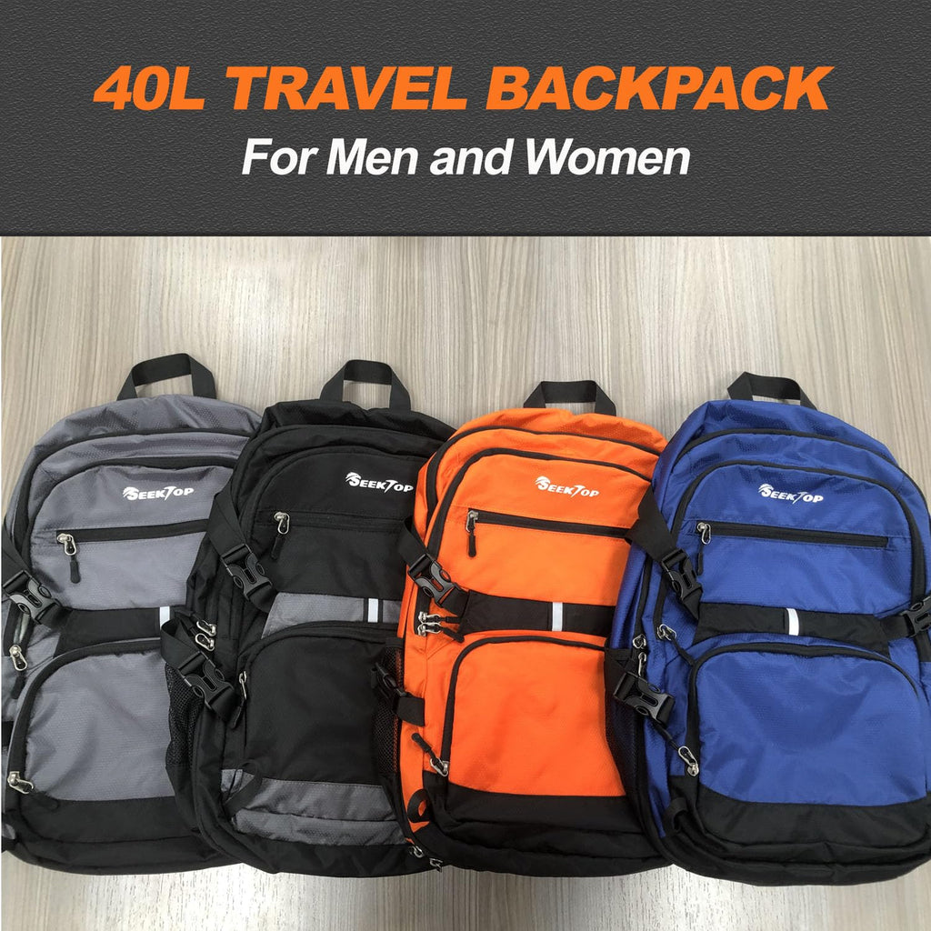 Brand: SeektopColor: OrangeFeatures: 【MUITIPLE POCKETS & KEEP ITEMS ORGANIZED】Large travel backpack with organized ten pockets and the features with multi-compartment design includes one 180-degree opening main zipped pocket, three front pockets with zippers and one anti-theft pocket and two side pockets. The main pocket contains a dry and wet separation...