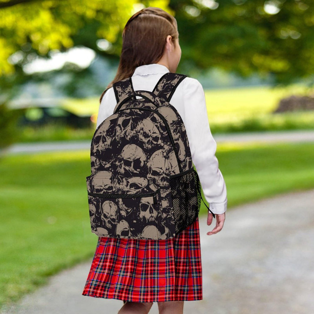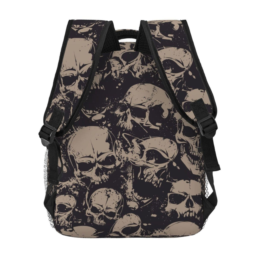 UEQIKI Retro Skull Lightweight Travel Backpack With Zipped Front Pocket Printed Laptop Bag Fashion Casual Daypack For Work, Hiking, Camping Unisex