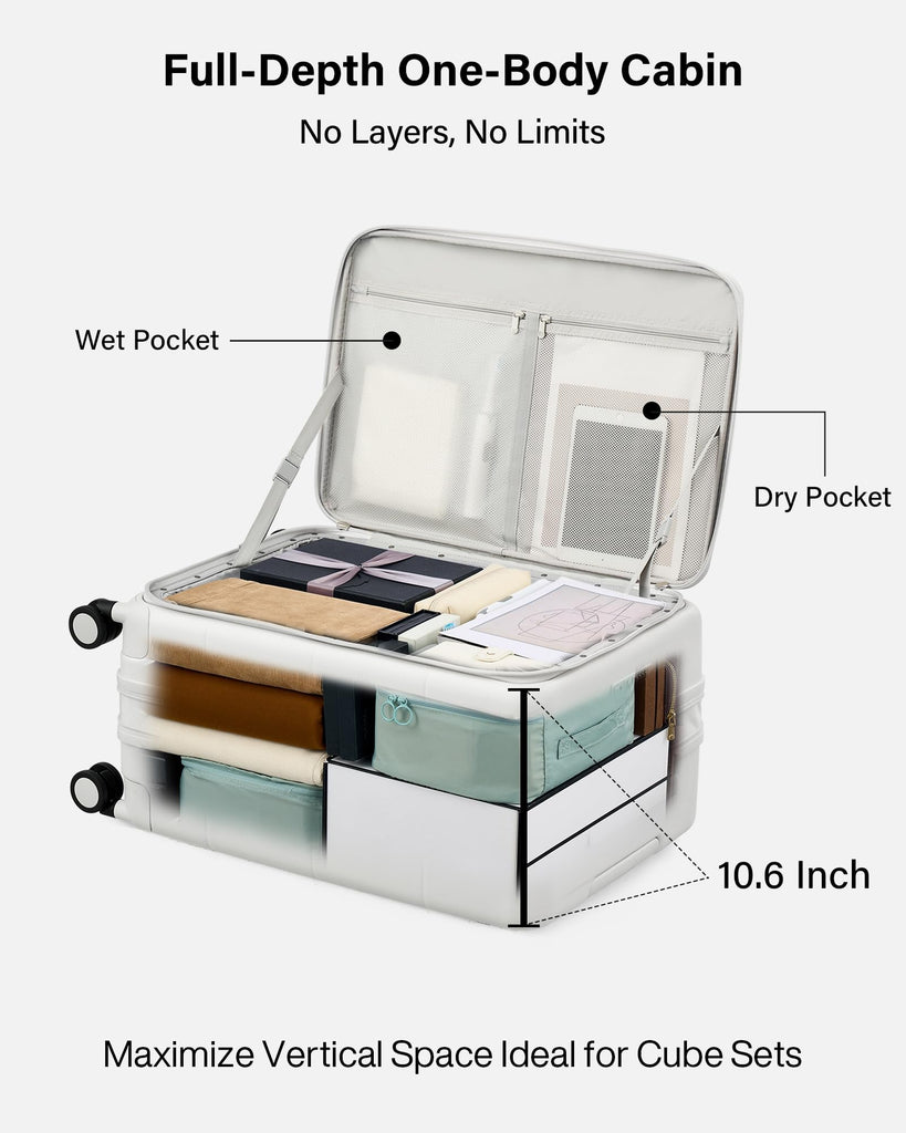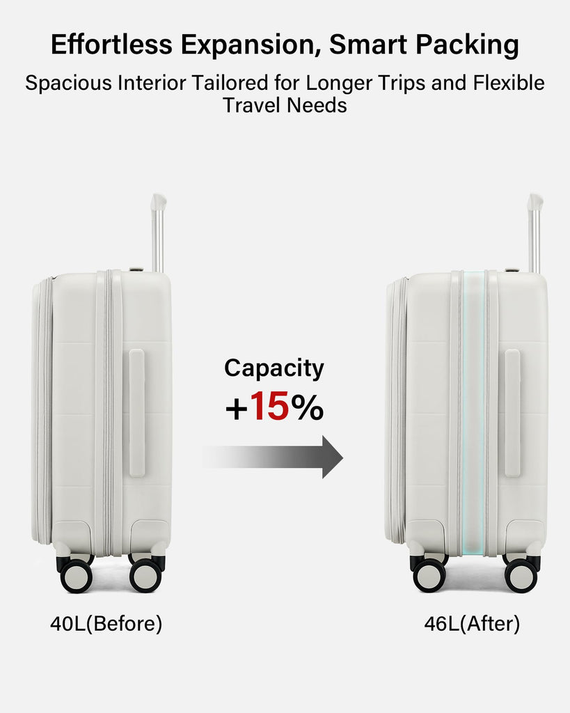- Smart Expansion for 15% Extra Capacity: Unlock up to 6L additional packing space instantly. Our expandable design transforms this hard shell carry on luggage into a versatile traveler, letting you pack souvenirs or extra essentials effortlessly